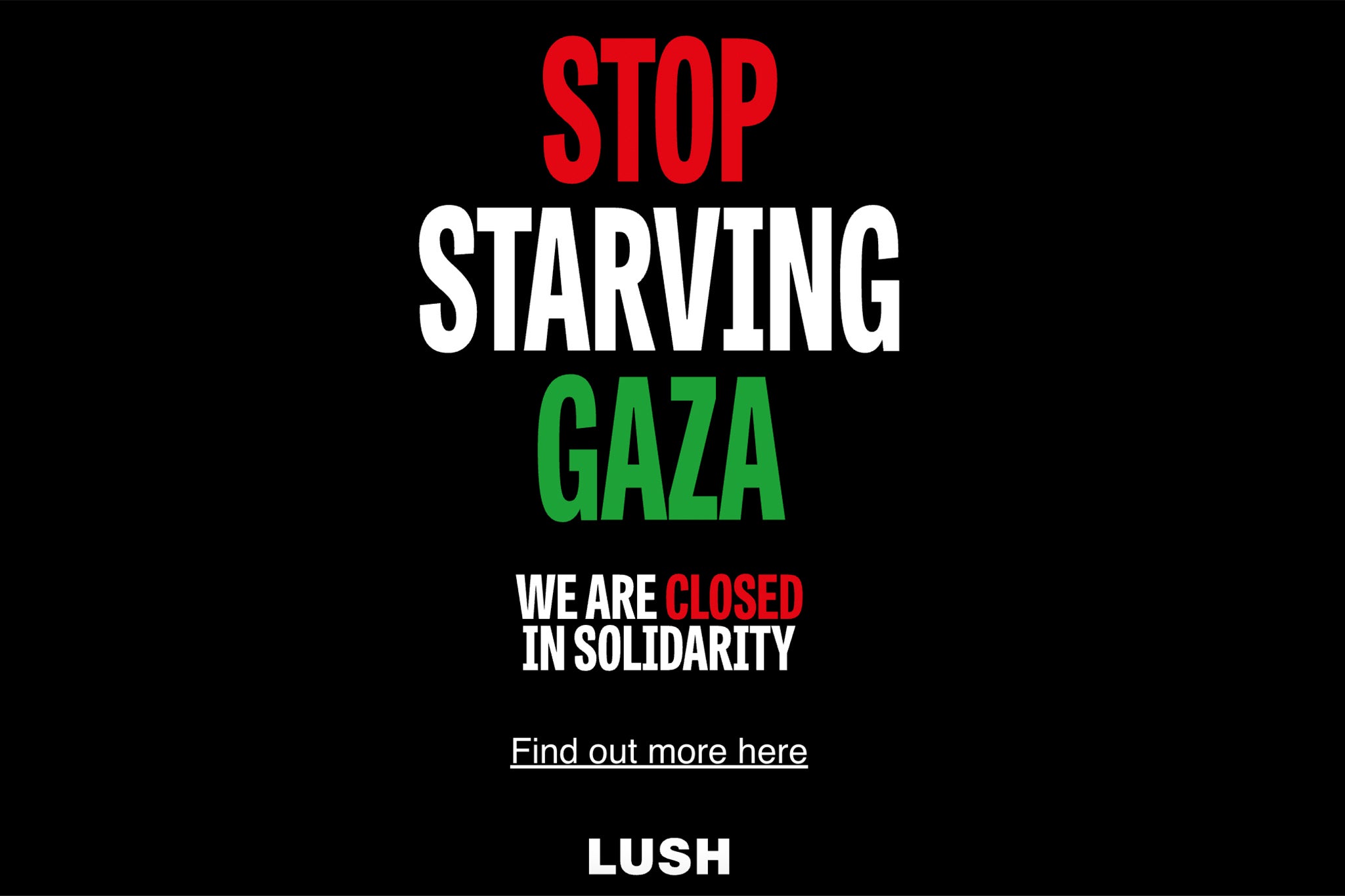 Another page reads: “Across the Lush business we share the anguish that millions of people feel seeing the images of starving people in Gaza, Palestine. Like the rest of the world, we struggle to find ways we can help whilst the Israeli government is preventing urgent humanitarian assistance from entering Gaza.”