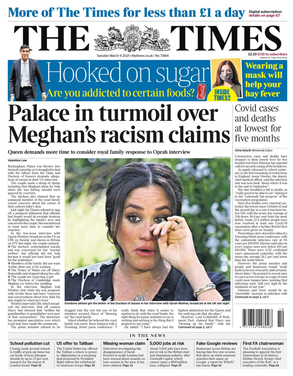The UK’s newspapers were flooded with the aftermath from the Duke and Duchess of Sussex’s two-hour-long interview with Oprah Winfrey.