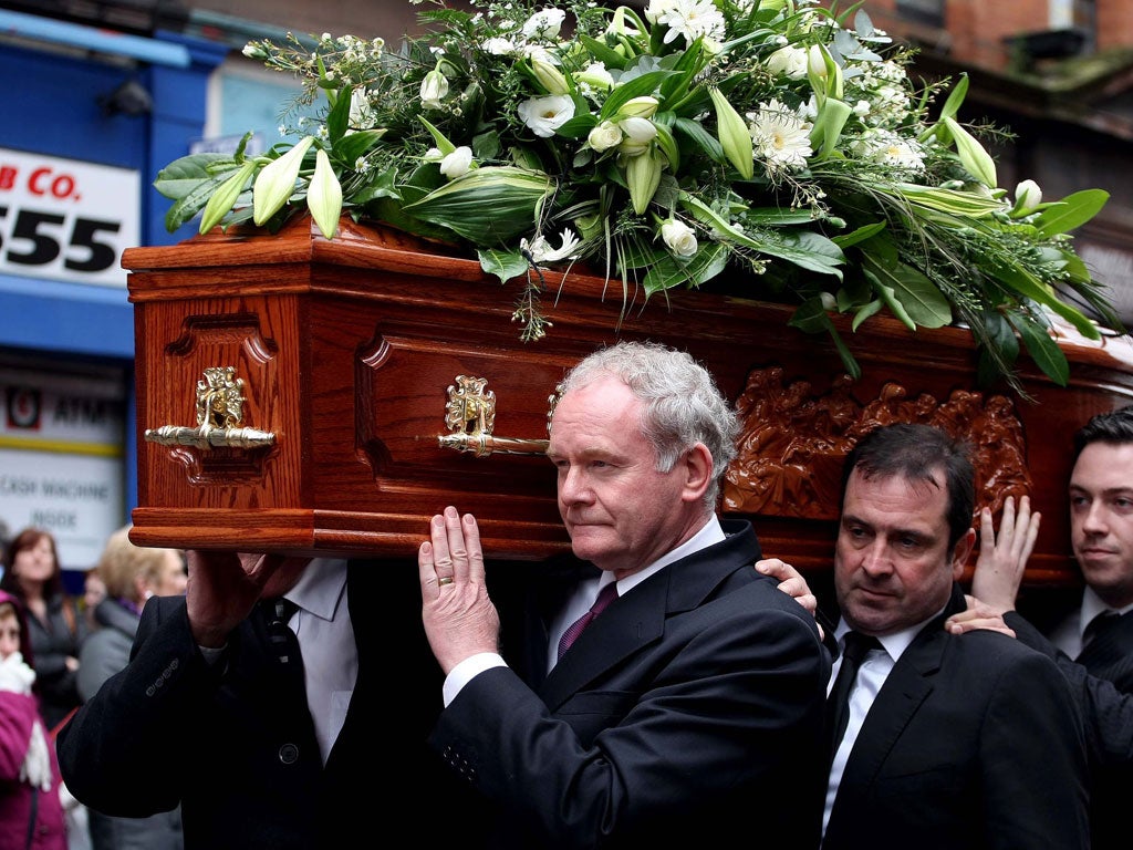 Deputy First Minister of Northern Ireland Martin McGuinness was also present, as well as other political representatives, and carried the coffin.