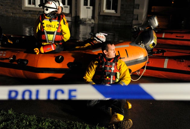 Water levels rose to almost 8ft on the worst-affected streets, and fire crews had to pump water out of homes. The weather was so severe that lifeboats deployed to rescue people had to turn back. More than 1,200 people were left without electricity.