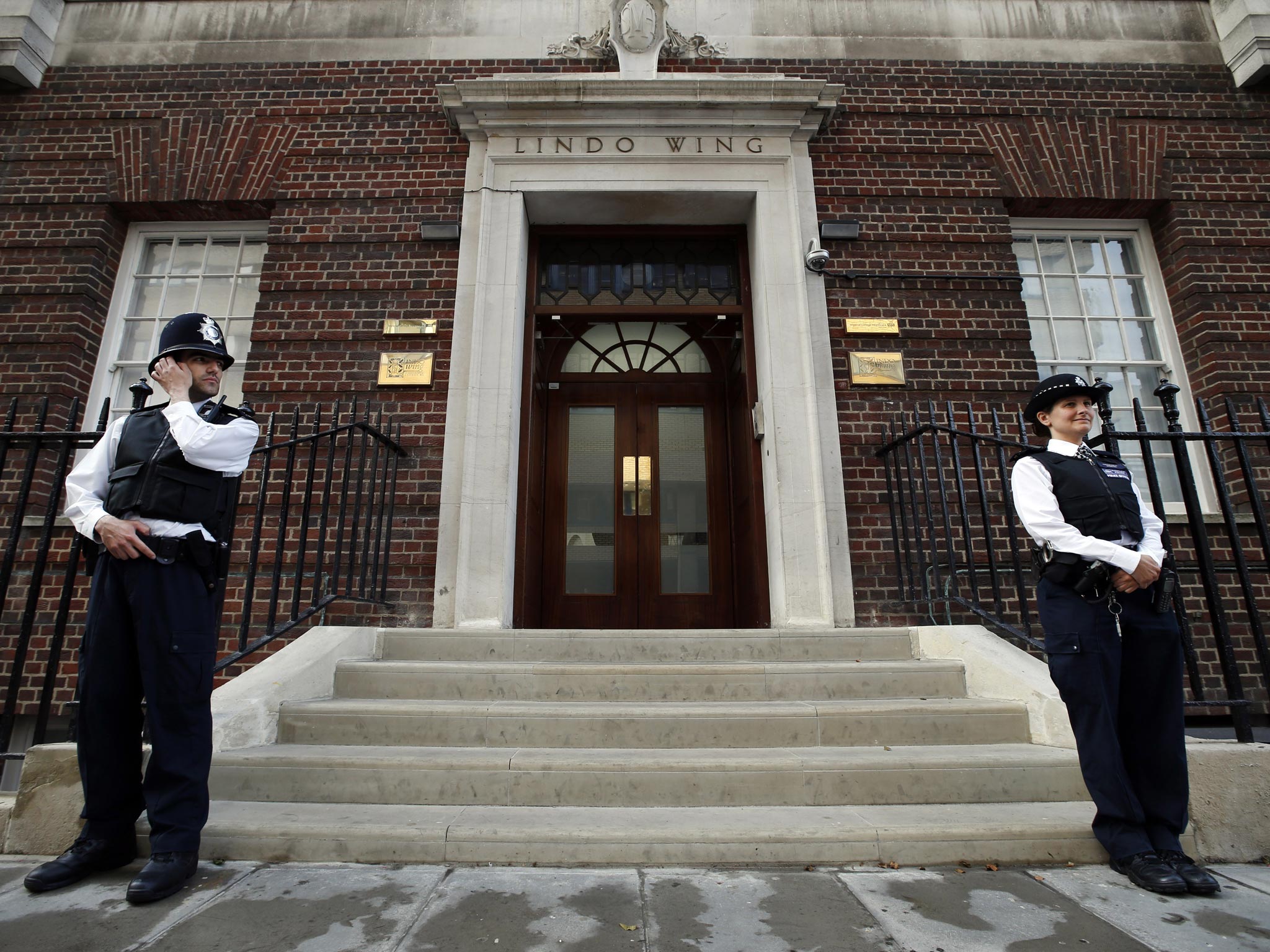 There is a strong police presence around the immediate vicinity of the hospital. Two police officers are guarding the entrance to the Lindo wing.