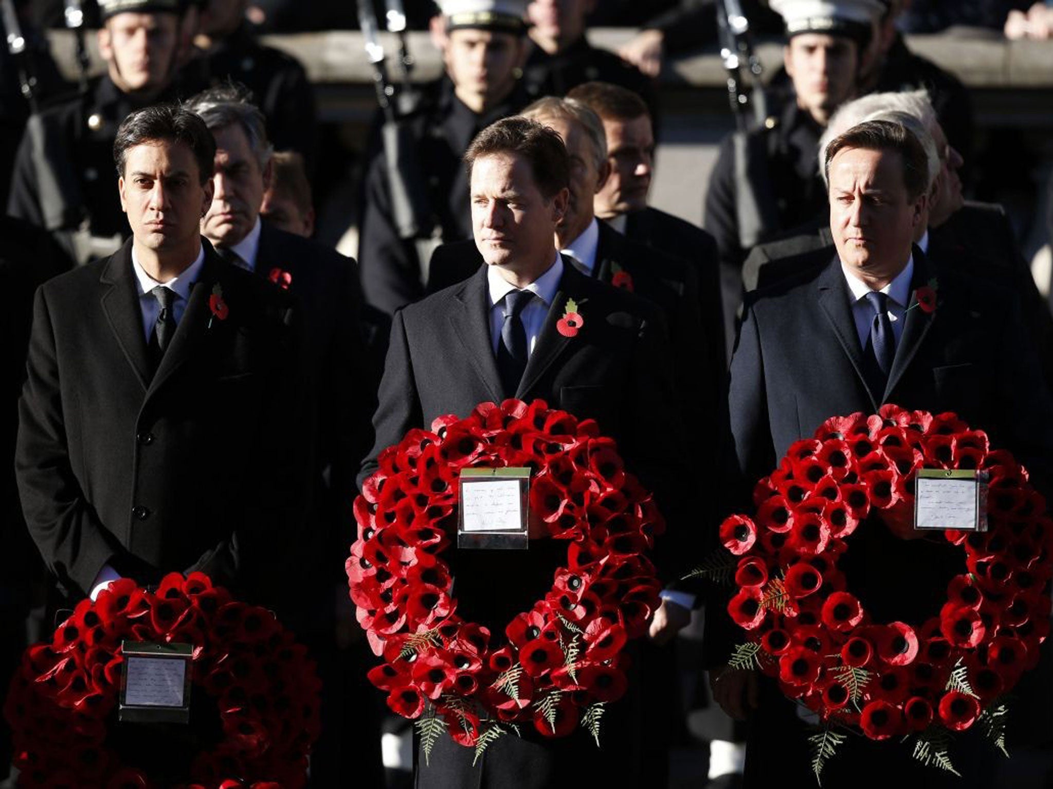 David Cameron and other party leaders joined former prime ministers Sir John Major, Tony Blair and Gordon Brown to lay wreaths at the Cenotaph.