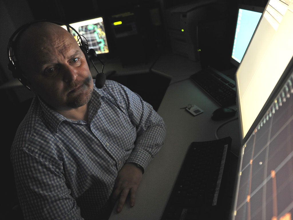 Nicholas Mason, 41, is an air traffic controller at NATS Prestwick Centre near Glasgow and oversees more than 400 aircraft flying from the US to Europe a night. Start time: 10pm. End time: 8am