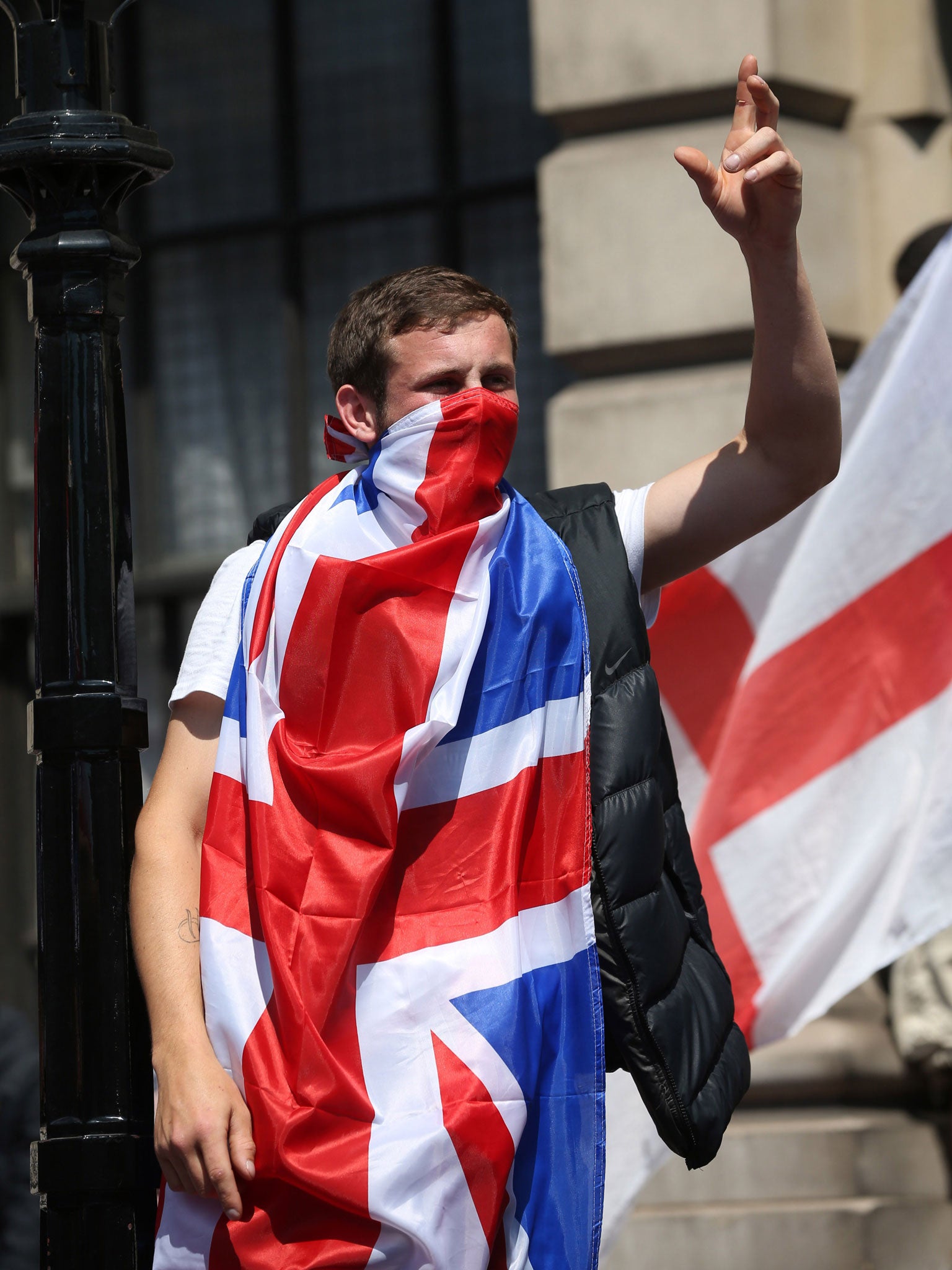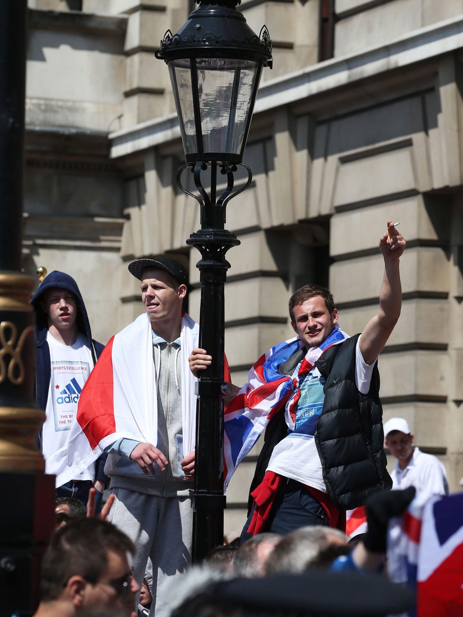 The EDL demonstrators pushed their way through a police cordon as they made their way to Trafalgar Square.
