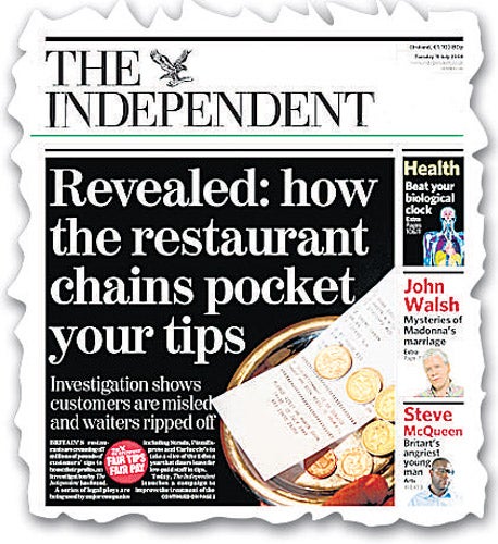 Restaurants were accused yesterday of exploiting a loophole in a new law designed to ensure that staff receive the tips left by customers. In 2008, the Labour government bowed to The Independent's "fair tips" campaign by banning employers from counting tips towards the national minimum wage.