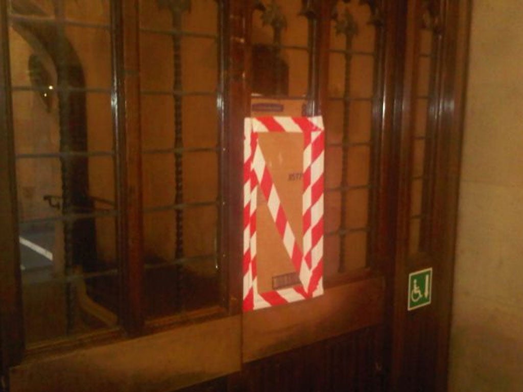 Police were called and it took five security officers to bring the incident to an end. Mr Joyce was handcuffed and was reportedly still struggling as he was led away. A glass window in a door along the corridor was broken.