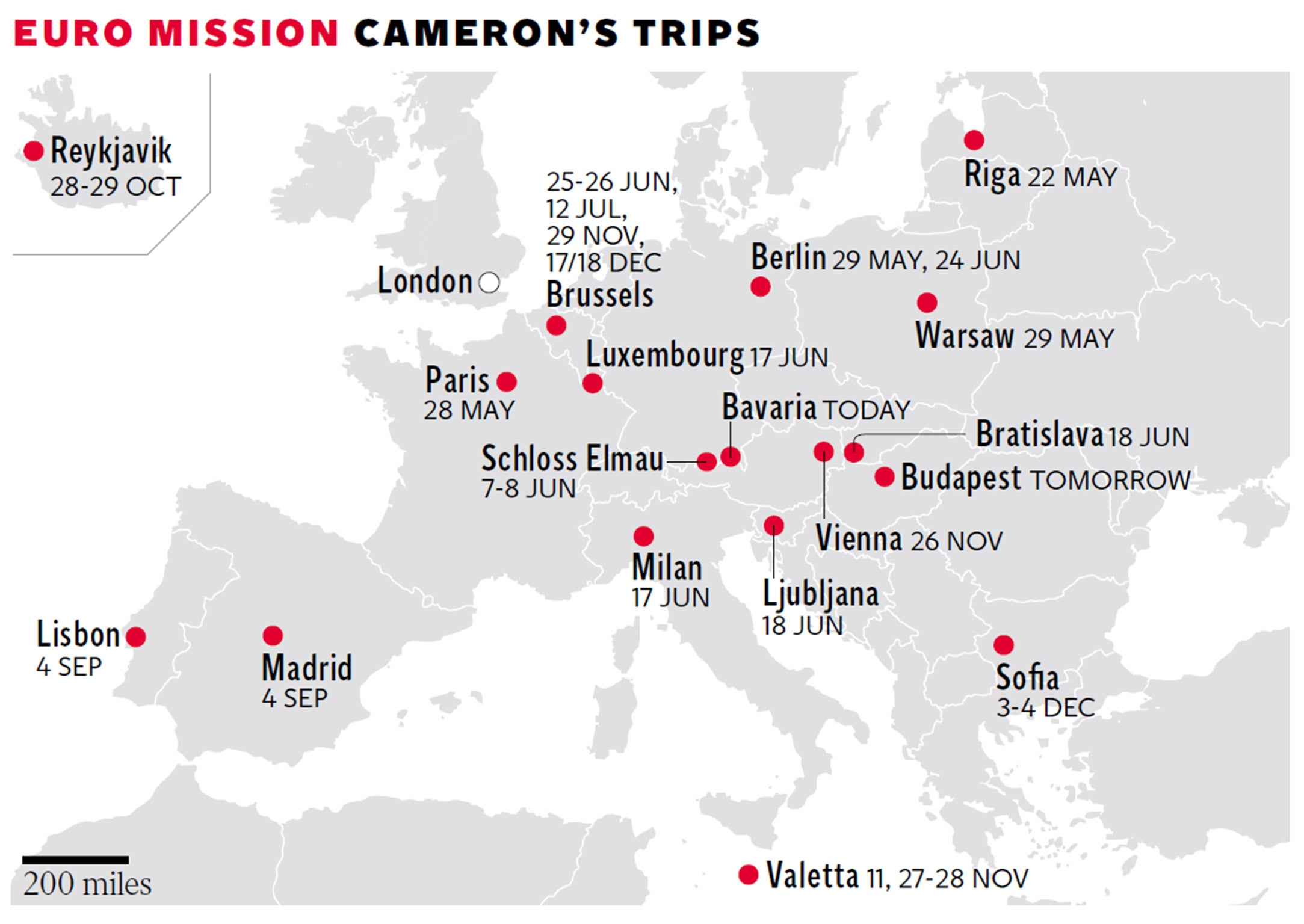 In the past seven months, Mr Cameron has already visited 17 European capitals on top of meetings in Downing Street and Brussels – the most by any British Prime Minister in recent history.