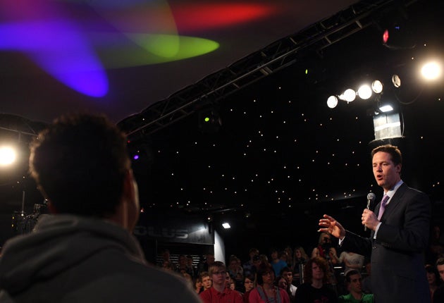 If the nation's sudden love affair with Nick Clegg lasts until polling day the Liberal Democrats are on track to pick up a three-way marginal being strongly targeted by the Conservatives, a survey by The Independent suggests.