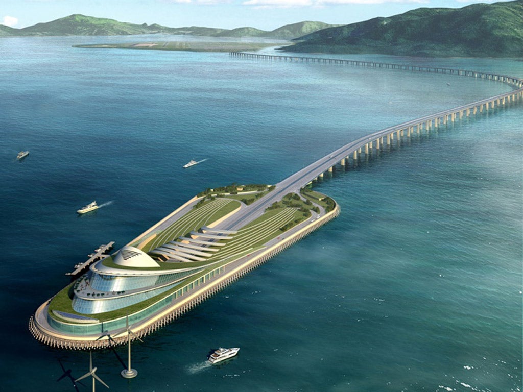 Vast series of bridges and tunnels to connect three of southern China's major cities at a cost of £6.8bn. It will reduce the journey time between the cities from nearly five hours to 40 minutes.