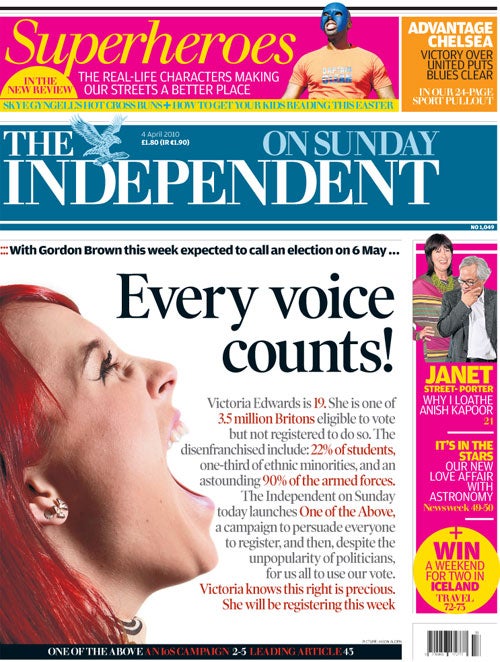 The IoS campaign, which has the backing of Gordon Brown, David Cameron, Nick Clegg and more than 100 leading figures from politics and public life, has two aims: first, to increase registration and then to boost turnout at the ballot box.