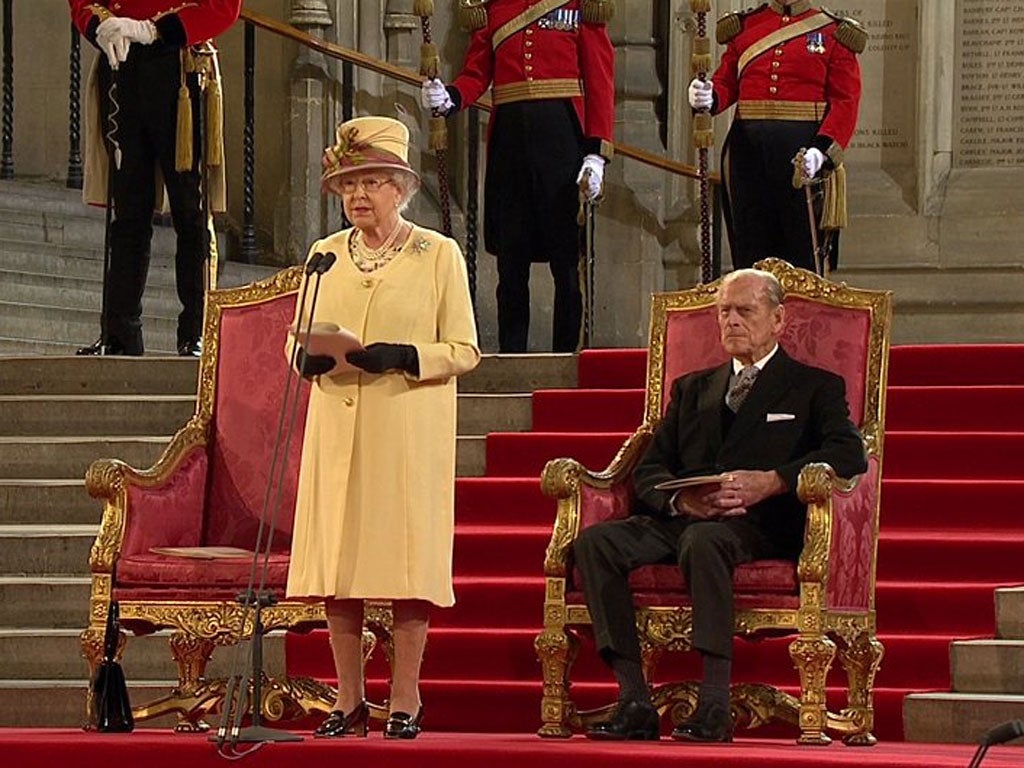 This was the Queen's sixth address to both Houses of Parliament. She gave similar speeches in celebration of her Golden Jubilee in 2002 and Silver Jubilee 25 years earlier in 1977.