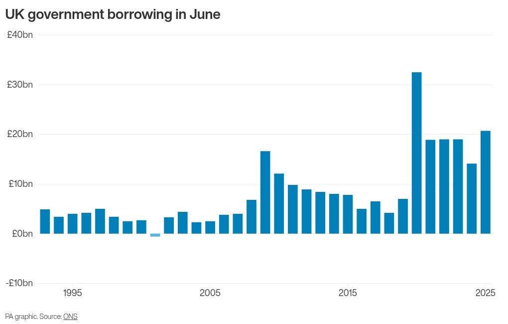 Rachel Reeves under pressure as UK borrowing higher than forecast in June thanks to soaring debt interest costs