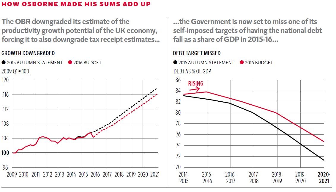 If anything it was more gloomy. The Chancellor had, of course, got his spin in early, warning weeks ago of a “dangerous cocktail” of global economic threats to the UK and admitting that he would have to make further spending cuts. But the Office for Budget Responsibility, which provides forecasts for the Treasury, was unusually pessimistic. It slashed its forecast for potential productivity growth for the domestic UK economy significantly from its forecast in last November.