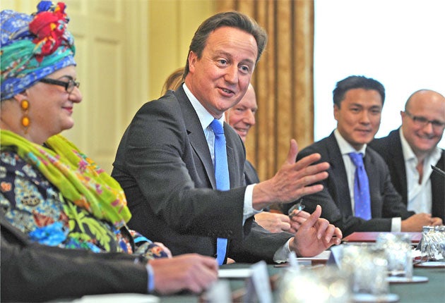 The guests included the IT entrepreneur Martha Lane Fox, who runs a charitable foundation; Nat Wei, the Government's new adviser on "big society"; Camilla Batmanghelidjh, of Kids Co, which works with vulnerable young people; Ray Mallon, the Mayor of Middlesbrough; and Rob Owen from St Giles Trust, which works with young offenders. They discussed ways of encouraging community action, boosting volunteering and setting up a new national citizen's service for 16-year-olds. "We know the best ideas come from the ground up," Mr Cameron said.
