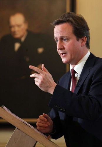 Admitting that parts of his economic strategy were "obsolete" because of the downturn, Mr Cameron promised to spend less than the £680bn pencilled in by the Government for the 2010-11 financial year. Previously, the Tory leader had matched Labour's plans for the next three years to insulate his party against the allegations of "Tory cuts" which have damaged it at the last two elections.