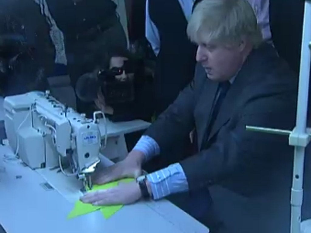 London Mayor Boris Johnson showed off his tailoring skills during a recent visit to a clothing factory in east London. Johnson sewed together two pieces of neon-coloured material which he described as a 'codpiece'.