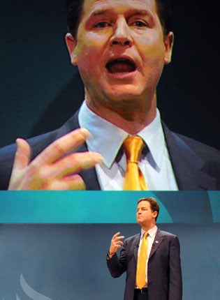 Mr Clegg said the party was "on the side of everyone who wants to get up and get on" and reprised his slogan of "alarm clock Britain". "These are the people Liberals have always fought for," he said. "People who have to work hard to make ends meet. People who need good schools, who rely on the NHS."