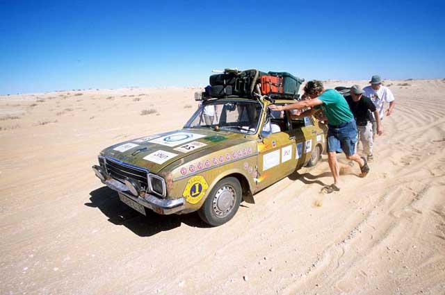 It is tempting to imagine one of those great explorers of the past gamely taking the wheel of a 1975 Hillman Hunter and leading an armada of rusty British tin through the western Sahara.