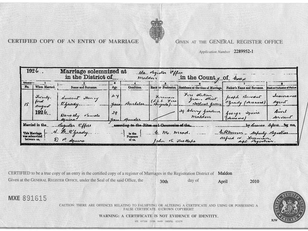 Events in her late teens and early twenties are unknown, but by 1918, she was becoming what was then called a thoroughly bad lot. That year brought a conviction for forging bank-notes, and she was sent to borstal and prison. By 1920, she was in service with a lady in Brighton, but not for long. Found guilty of stealing clothes, she was given two years' hard labour then moved back to London, and began collecting prostitution convictions, the fourth of which earned her three weeks in Holloway. The very day she was released, she married a London fireman, Vincent O'Grady. She was 28; he was 47.