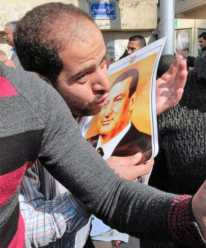 As younger demonstrators chanted anti-opposition slogans, Said Alessan, a company chairman, said of Tuesday's huge anti-Mubarak demonstrations: "Egypt is 80 million people, not one million." He claimed that 50 or 60 million supported the President. "If he leaves there will be chaos. Egypt will become Tunis, Iran, Gaza." Mr Alessan said he had responded to a call on state television to attend the rally in support of the President.