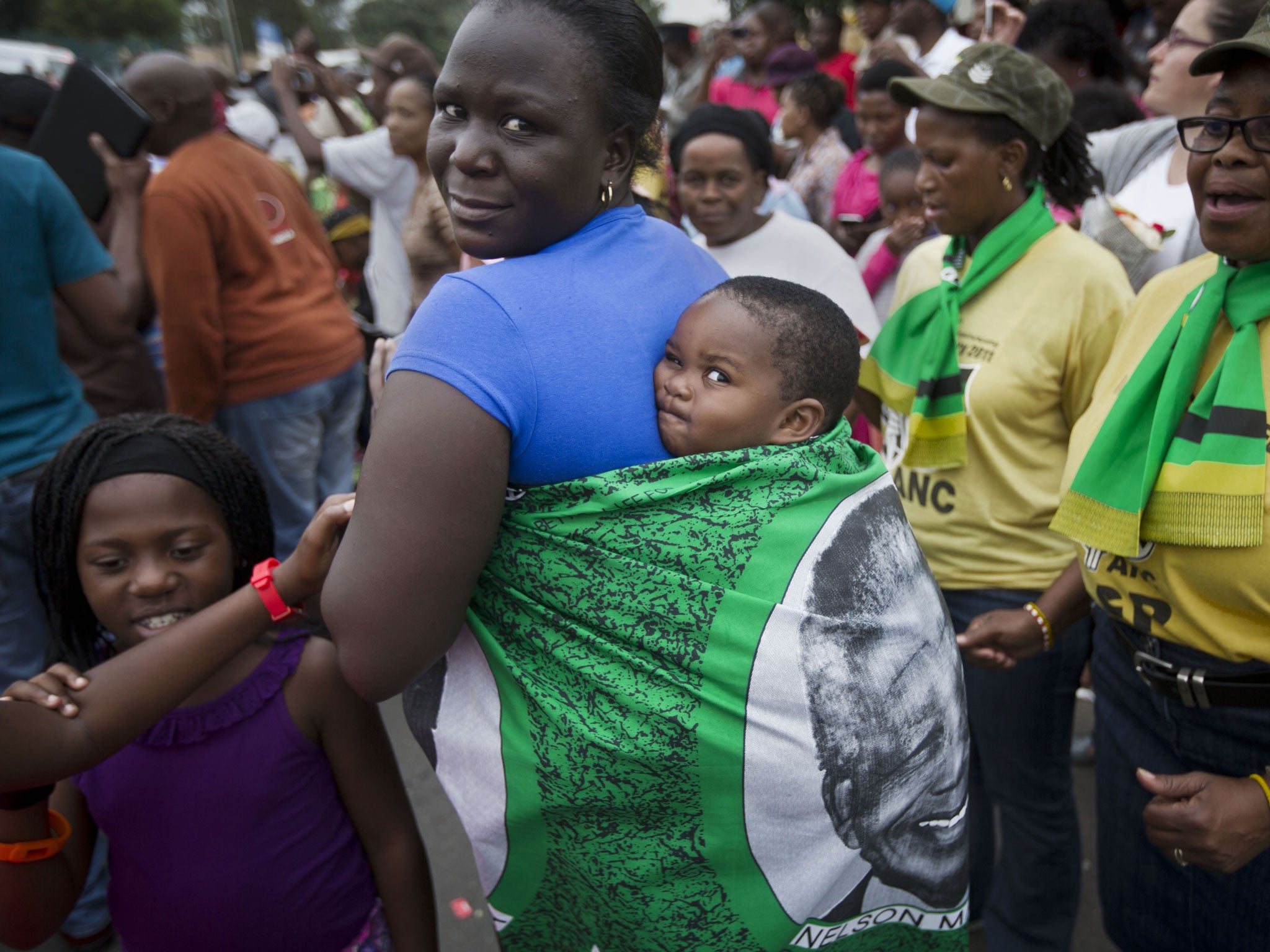 Nearby, a group of ladies proudly showed off their canary yellow tops, cheerleading the previously outlawed African National Congress (ANC) party that Mandela set up, and which still rules the nation.