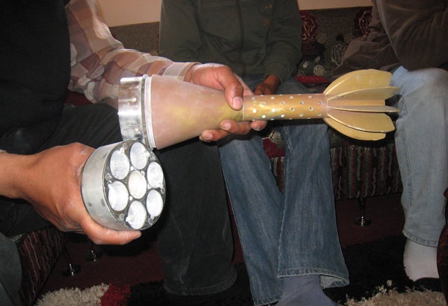 What Mr Srayti had encountered were MAT-120s, a Spanish-made mortar shell which opens in mid-air and disperses 21-bomblets over a wide area. When those bomblets hit their target – be it a vehicle, a home or a person – they detonate, spraying out a slug of white-hot molten metal that can penetrate a tank's armour. The hospitals soon filled up with civilians and rebel soldiers exhibiting horrendous burns.