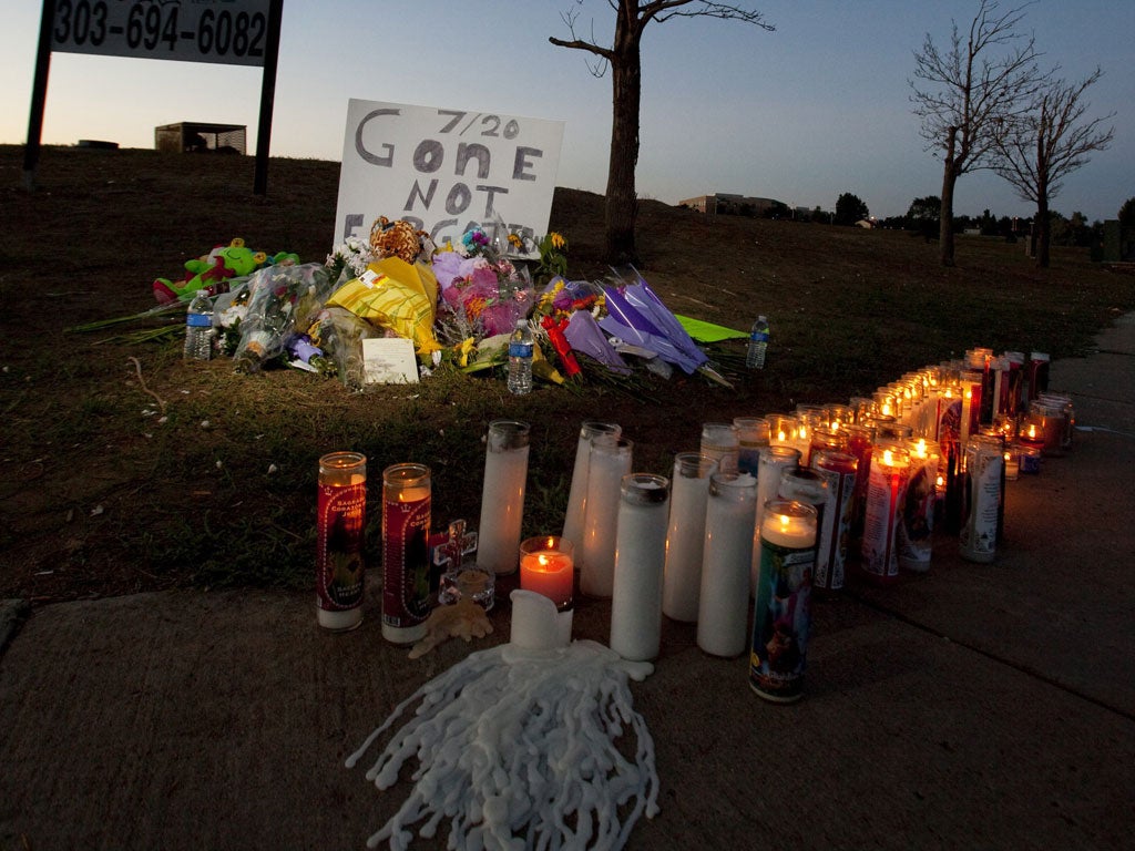The hill opposite Century 16 is now littered with makeshift memorials to the dead. As people placed the signs and symbols of shrines, from candles to teddy bears and messages such as "Aurora is strong", the area was the focus of a vigil held by Christian churches the night after the massacre.