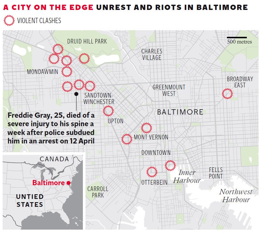 Freddie Gray’s life and death say much about the difficult problems that roil Baltimore. As a child, he was found to have elevated levels of lead in his blood from peeling lead paint in his home, leading to a raft of medical and educational problems, his family charged in a lawsuit. His friends remember him as a smiling, friendly guy who liked nice clothes and deplored violence. His criminal record says he operated on the periphery of the drug game. He did a short stint in prison, and according to news reports, his mother used heroin.