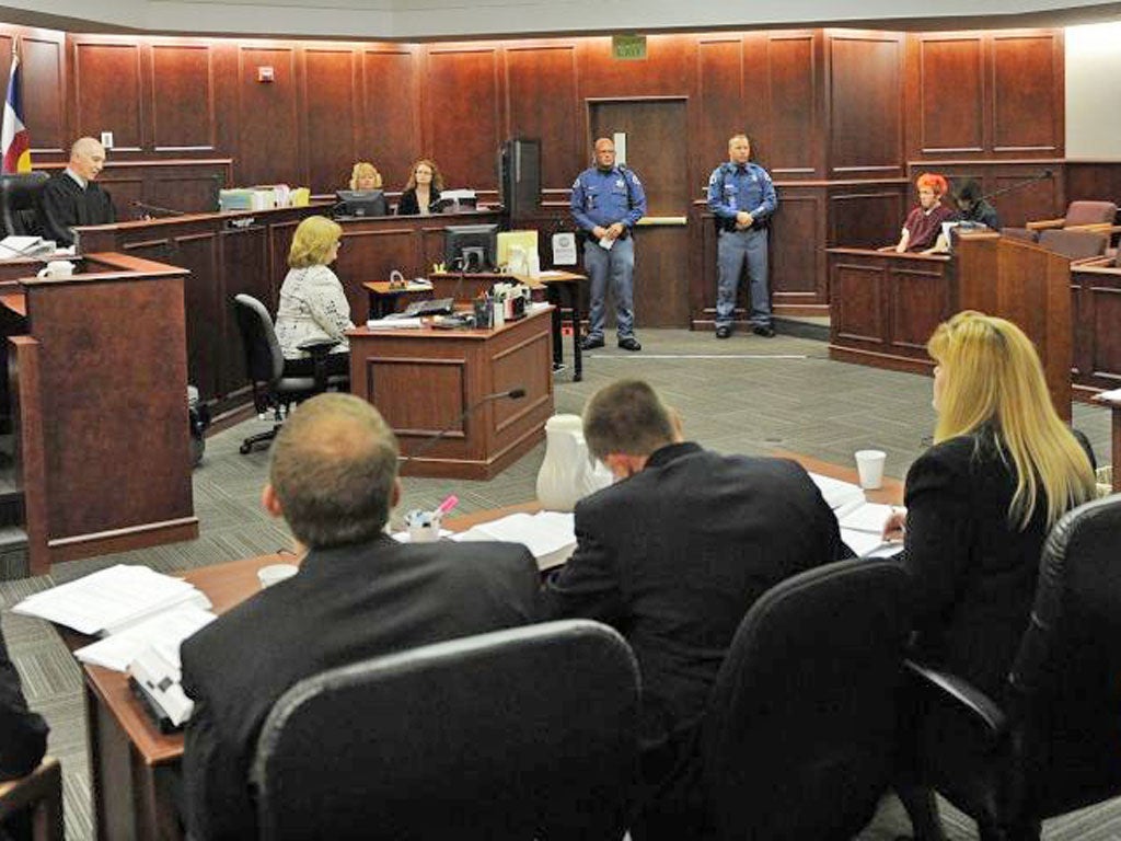 Five members of families who lost loved ones in the massacre sat amidst officials from the public prosecutor's office and victims' advocates on the public benches of the courtroom located in the Arapahoe County Justice Centre in Centennial, part of the Denver metropolitan area. One young woman sobbed throughout the hearing, holding hands with a friend.
