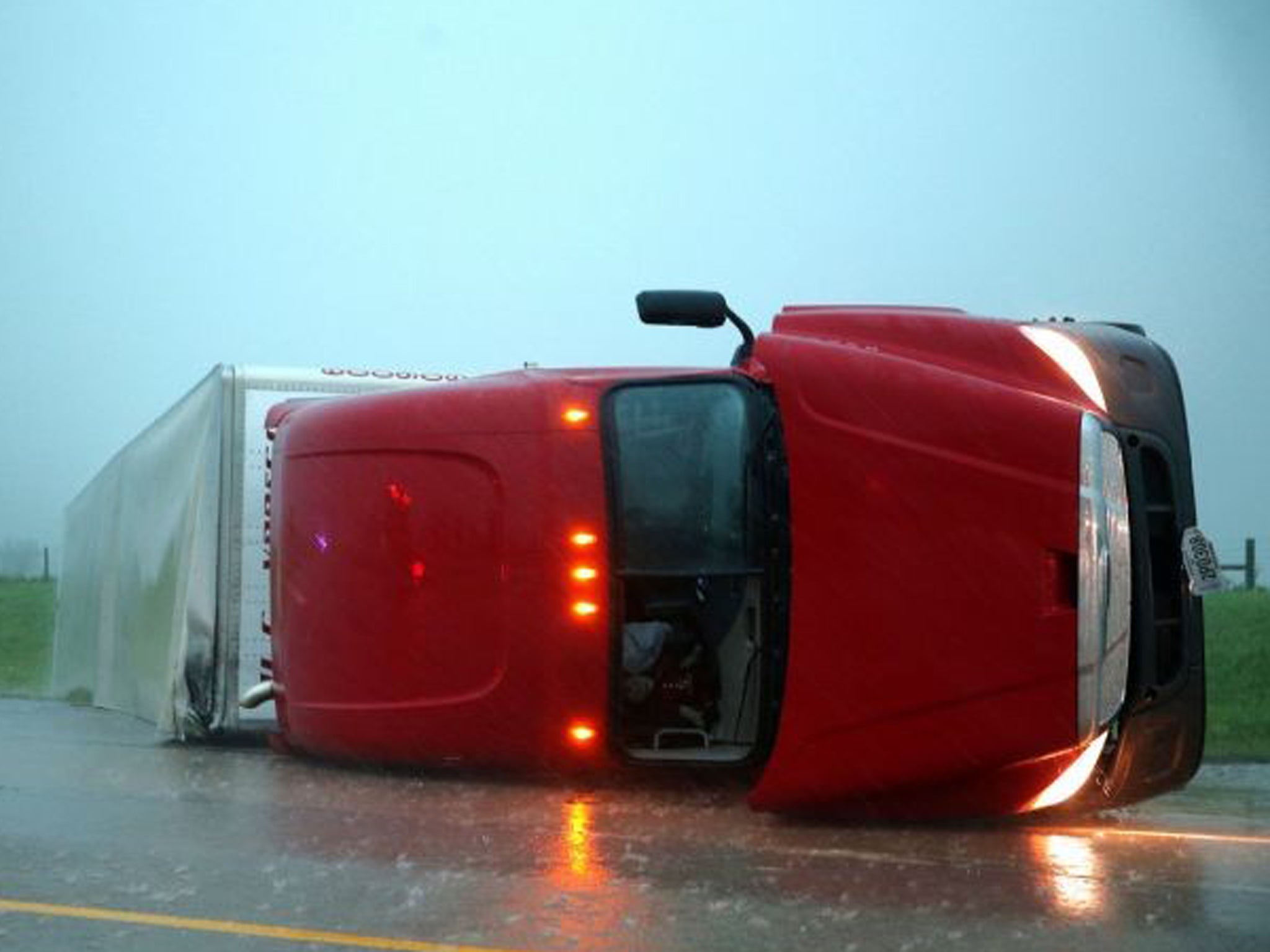 A tornado rampaged down Interstate 40 toward Oklahoma City, tipping over trucks and hurling hay bales, a witness said. Television images showed downed power lines and tossed cars as the storm systems dumped at least 3 inches of rain, stranding motorists in flood water.