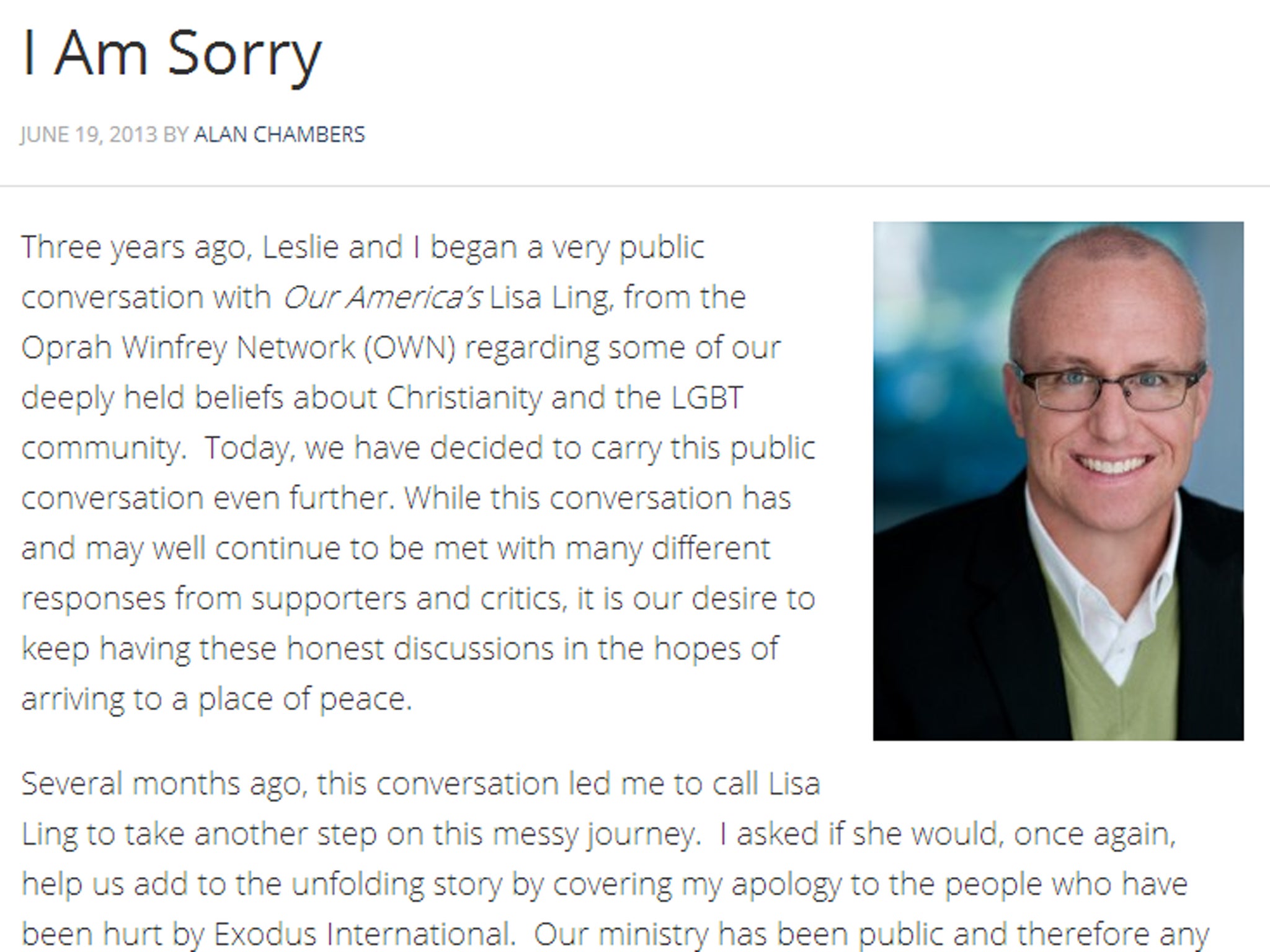 Exodus International president Alan Chambers says he is 'deeply sorry' for hurt caused to homosexual people