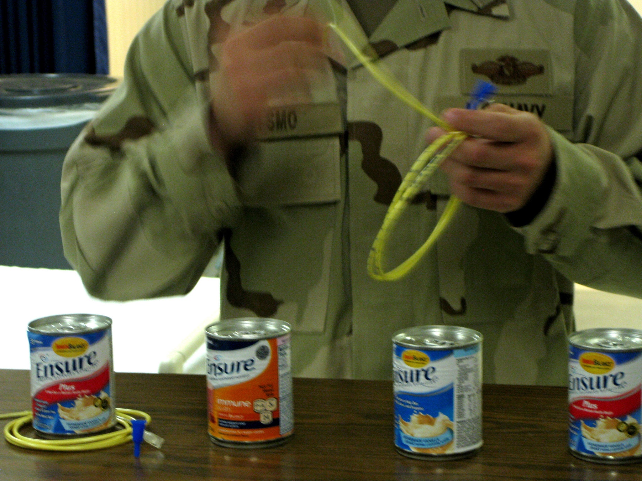 International medical groups have denounced the forced-feeding of Guantanamo Bay prisoners, which invariably involves strapping detainees into restraint chairs (marketed as a "padded cell on wheels" by their manufacturer), pushing a tube up their nose and down their throat, and pumping liquids into their stomach. Although it is considered a method of torture by the United Nations Human Rights Commission, the US military insists forced-feeding is a form of "medical intervention" and that the practice is less aggressive than it was.