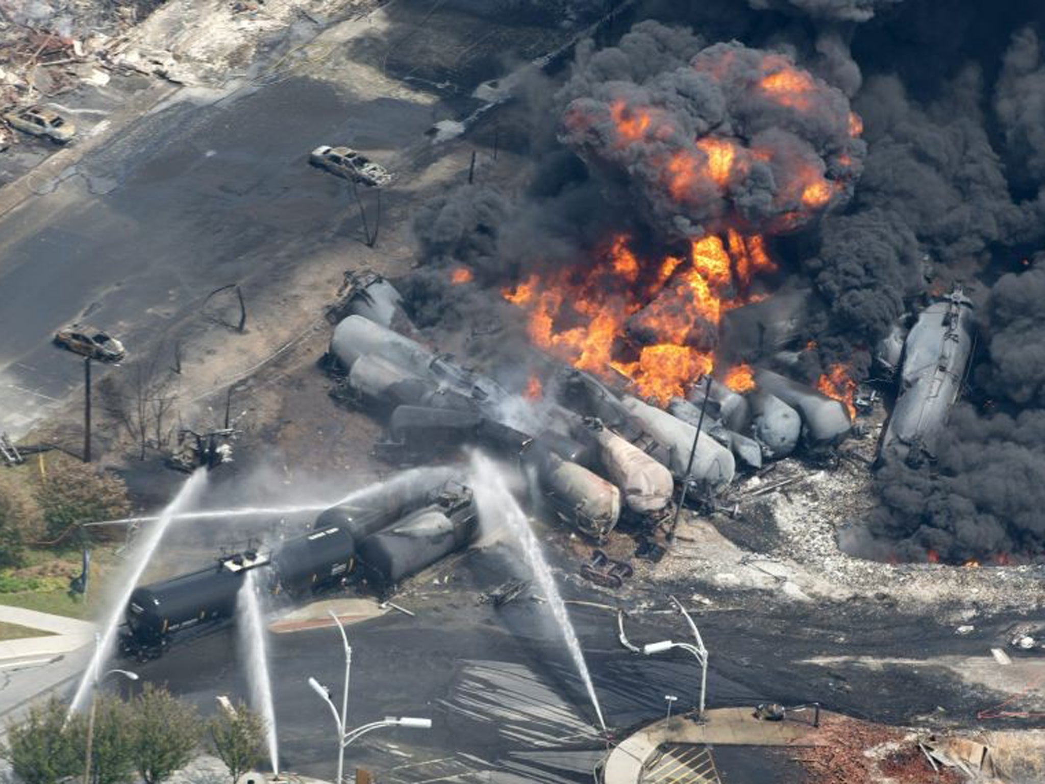 “There are still wagons which we think are pressurized. We're not sure because we can't get close, so we're working on the assumption that all the cars were pressurized and could explode. That's why progress is slow and tough,” said local fire chief Denis Lauzon.