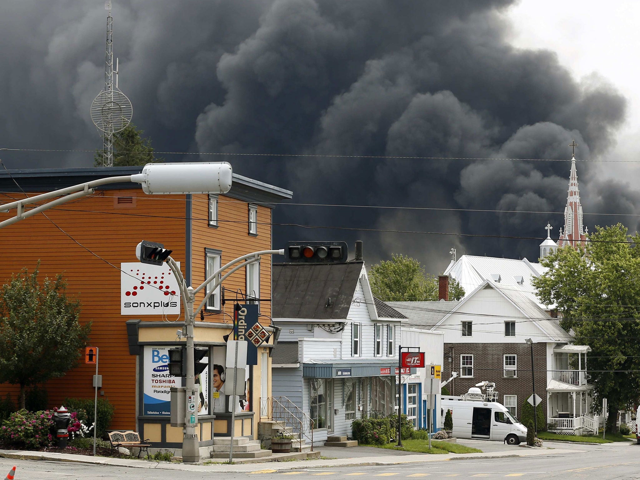 Lac-Megantic, with a population of 6,000, sits just on the border with US states Maine and New Hampshire, and the Canadian Broadcasting Corp. reported that American firefighters had been brought in to help tackle the blaze.