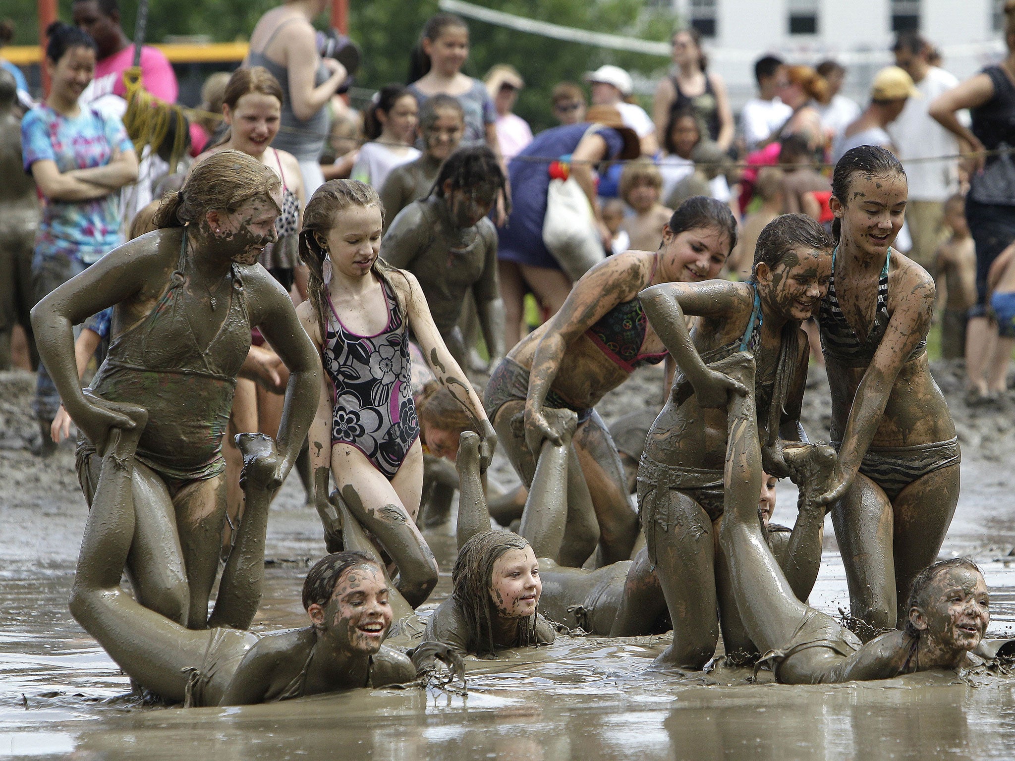 The 26th annual Mud Day in Westland, Michigan, was a huge success yesterday as hundreds of children dived in to enjoy the mess.