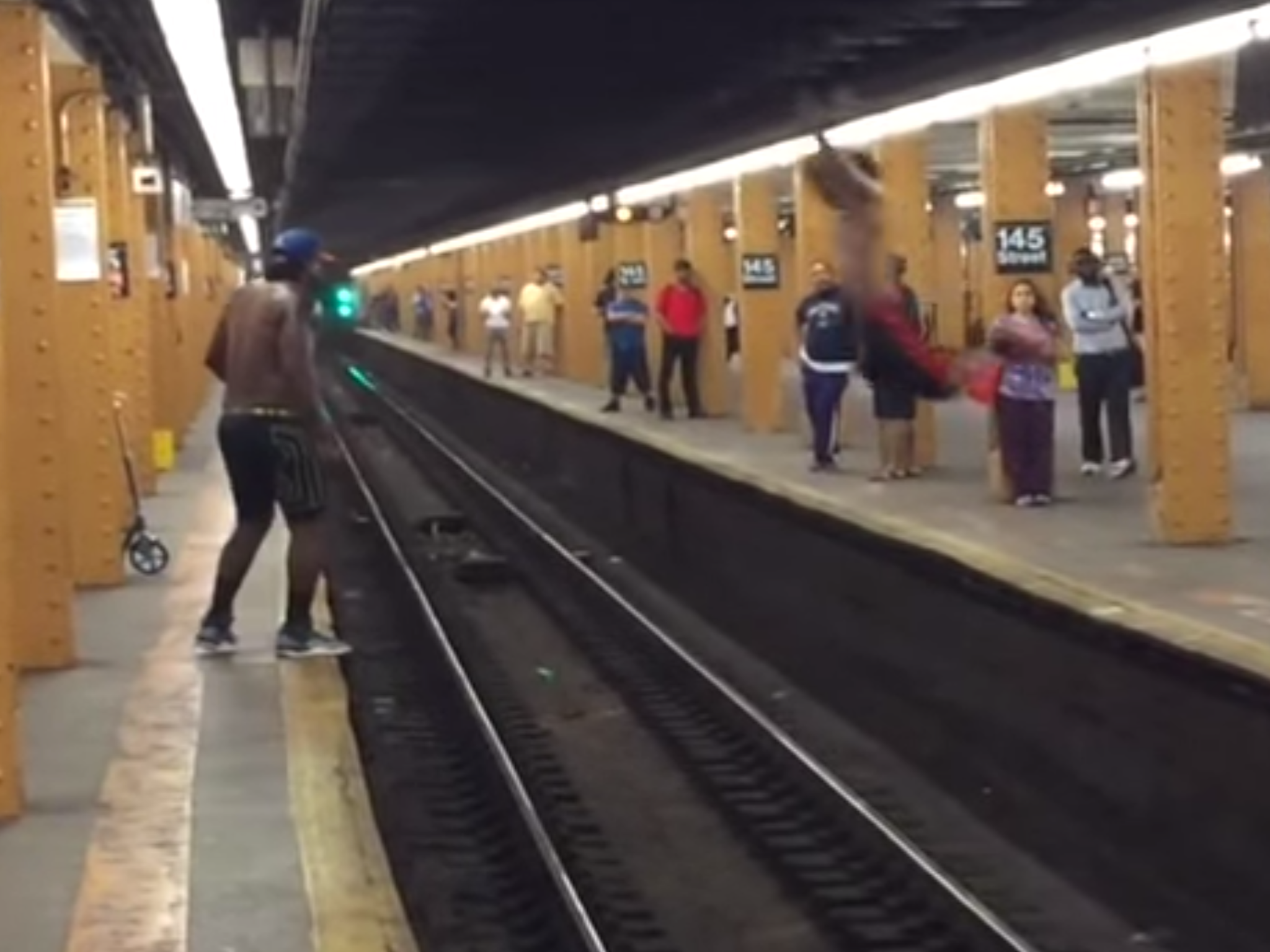 Perhaps this man should have thought twice before trying to clear the subway tracks