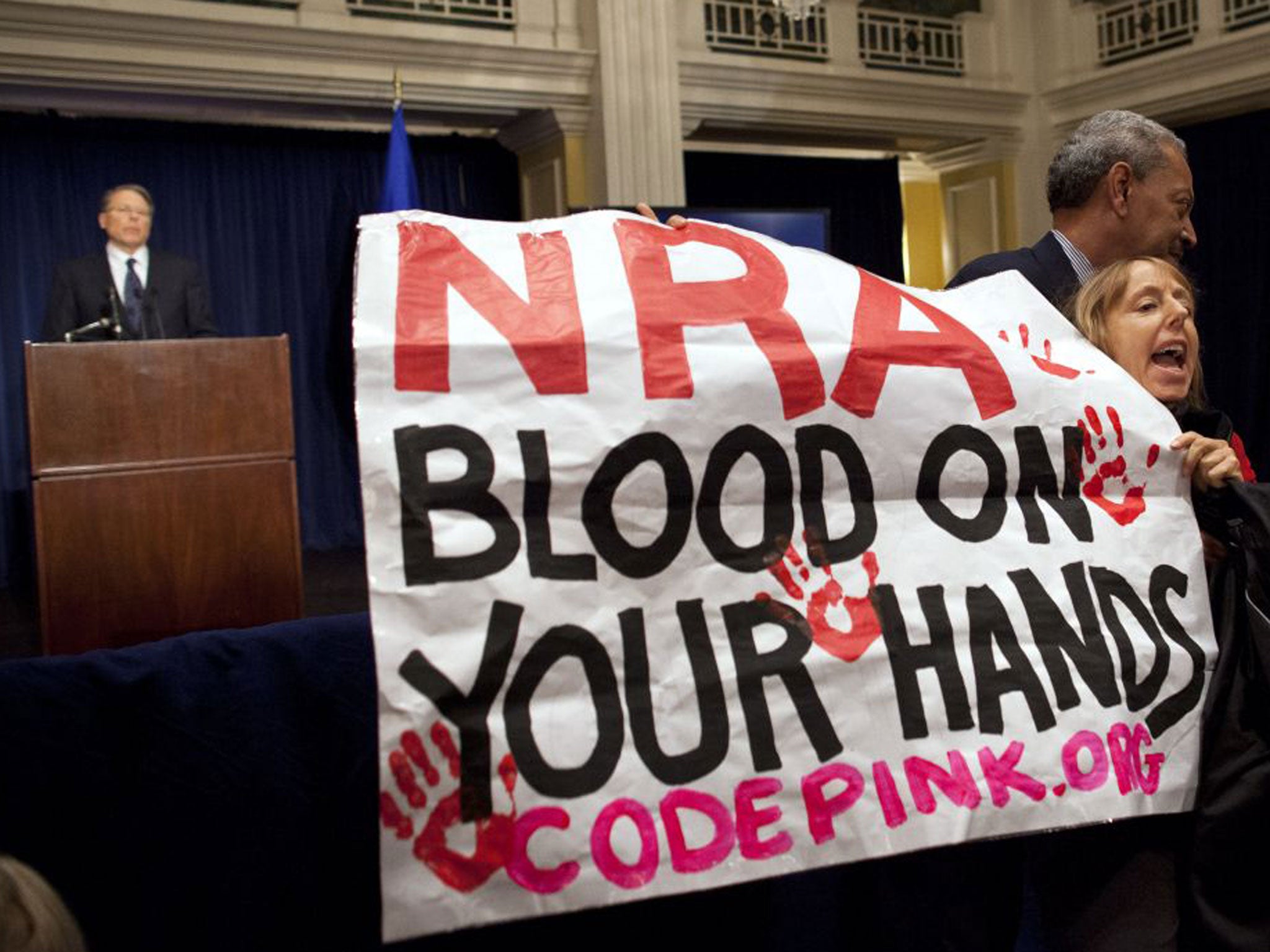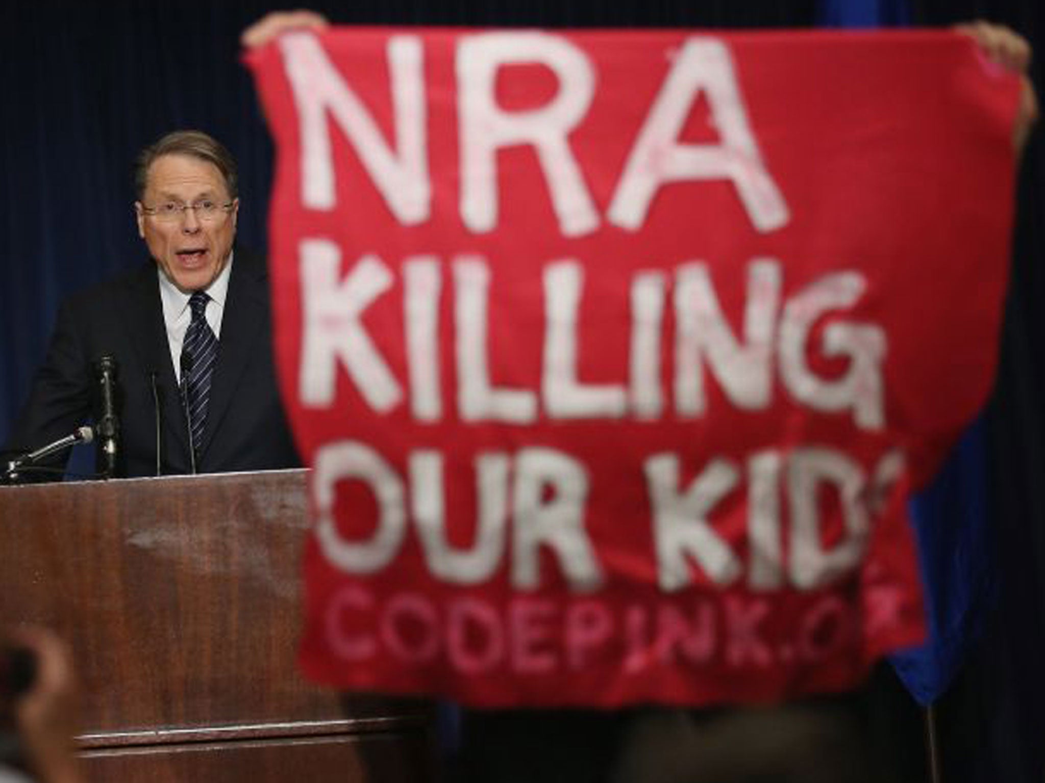 Interrupted twice by protesters who had sneaked into the audience in Washington to raise anti-NRA banners, Mr LaPierre spoke in terms that might find favour with the hardcore of his association’s 4.3 million-strong membership. Just 24 hours after President Obama ordered a task force led by Vice-President Joe Biden to come up with ways to reform the nation’s gun-control laws, Mr LaPierre made his own plea – that Congress “act immediately to appropriate whatever is necessary” to put armed guards in schools.