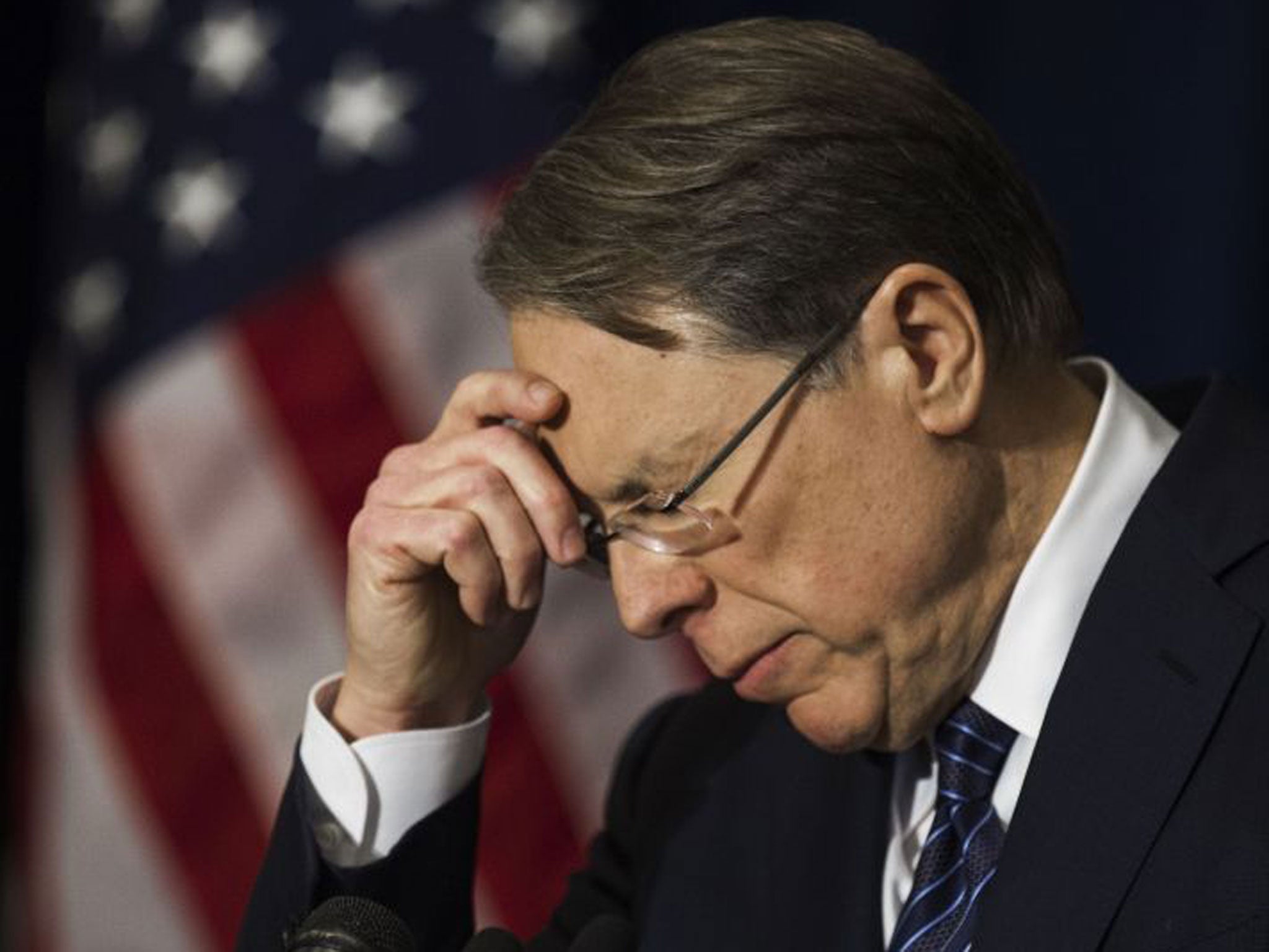 Moments after a protester shouting ‘The NRA has blood its hands!” was led out by security, Mr LaPierre, who did not take questions from the assembled reporters, chided the media for reflexively adopting an anti-gun stance. “I can imagine the shocking headlines you’ll print tomorrow. ‘More guns,’ you’ll claim, ‘are the NRA’s answer to everything.’ Your implication will be that guns are evil and have no place in society, much less in our schools,” he said.