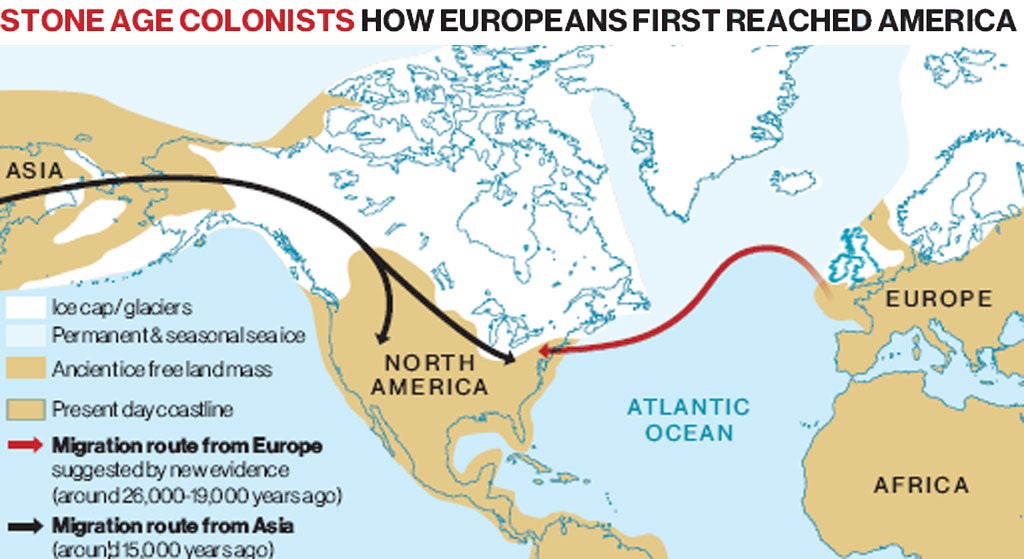 New archaeological evidence suggests that America was first discovered by Stone Age people from Europe – 10,000 years before the Siberian-originating ancestors of the American Indians set foot in the New World.