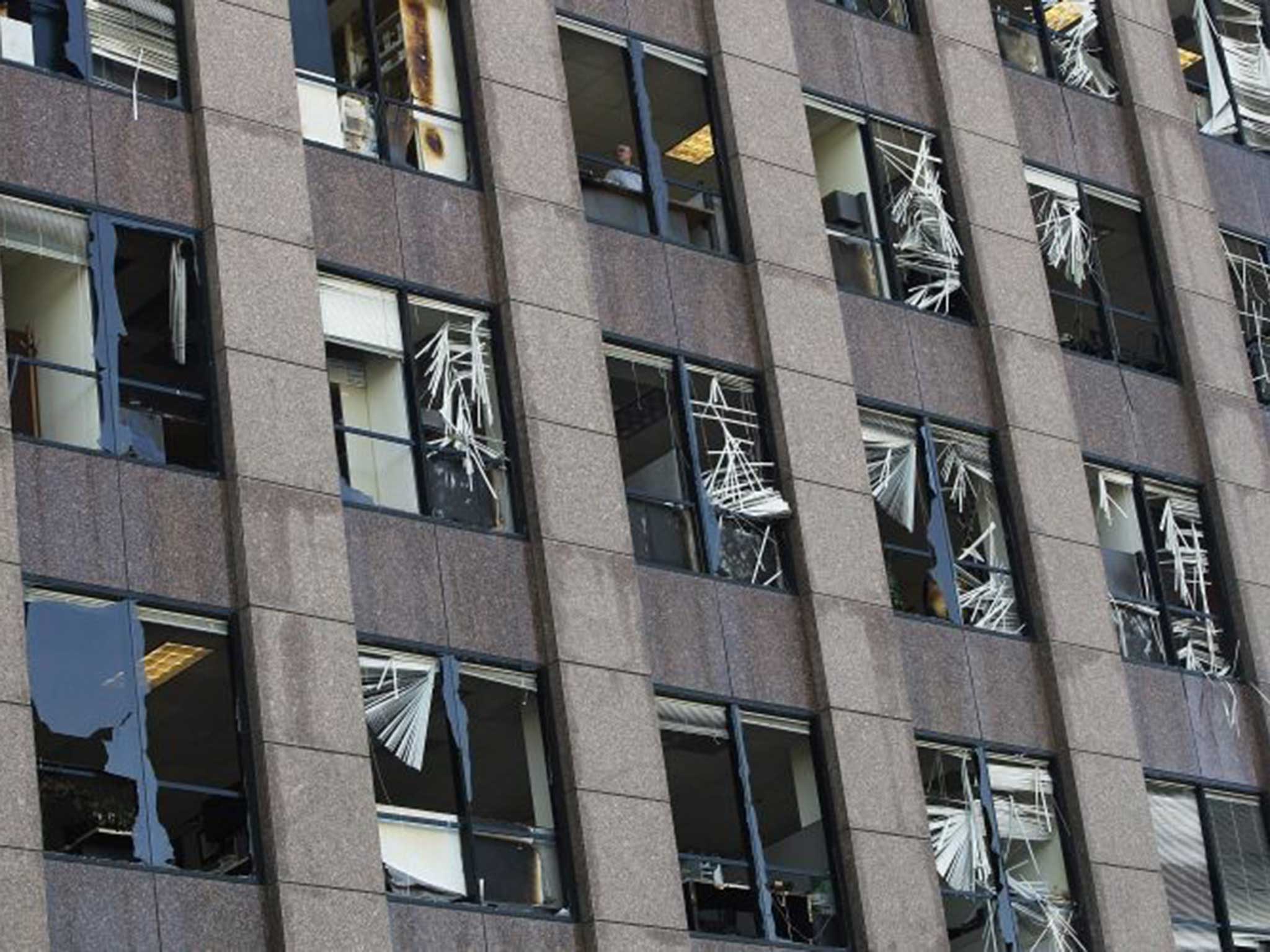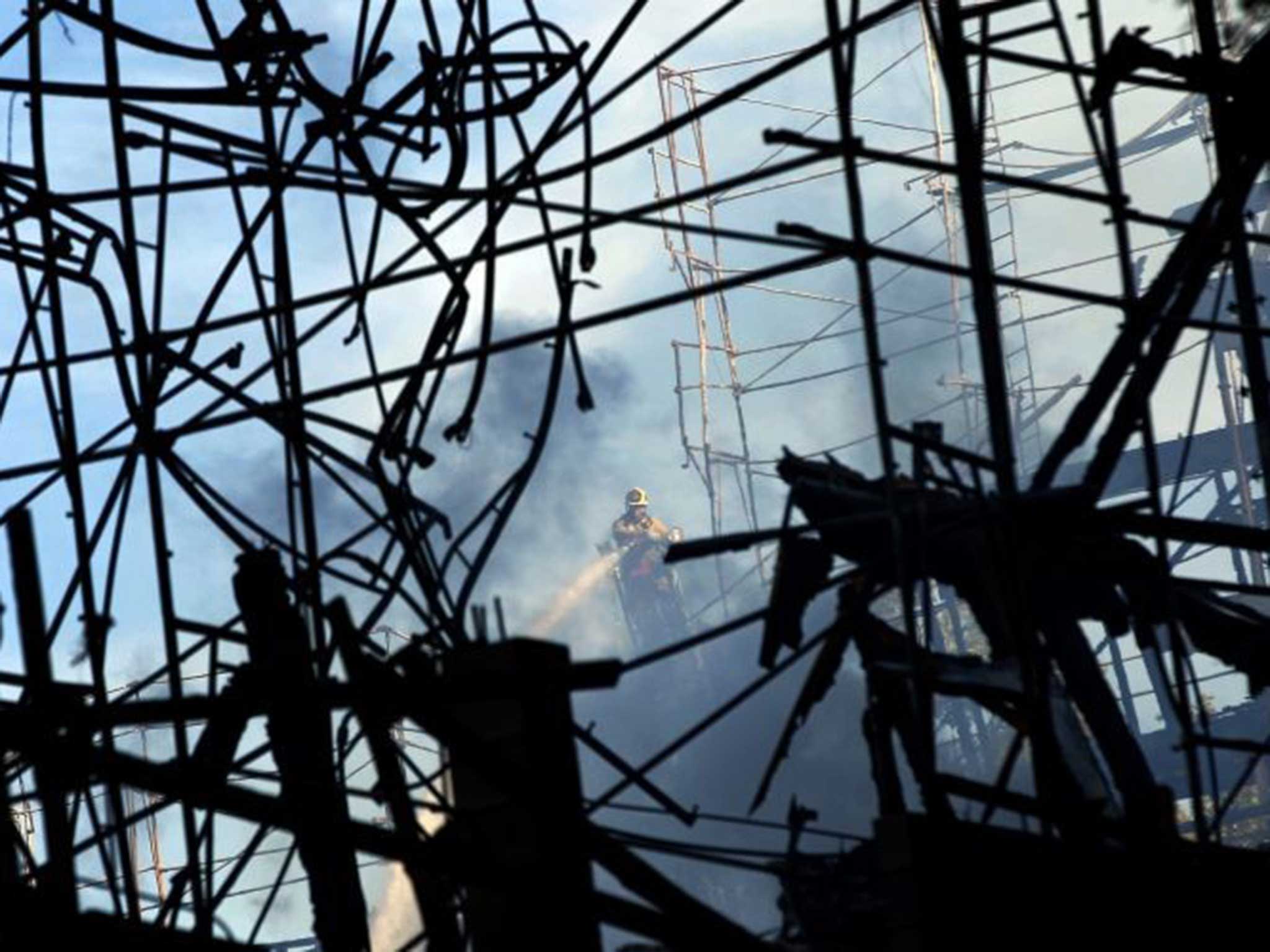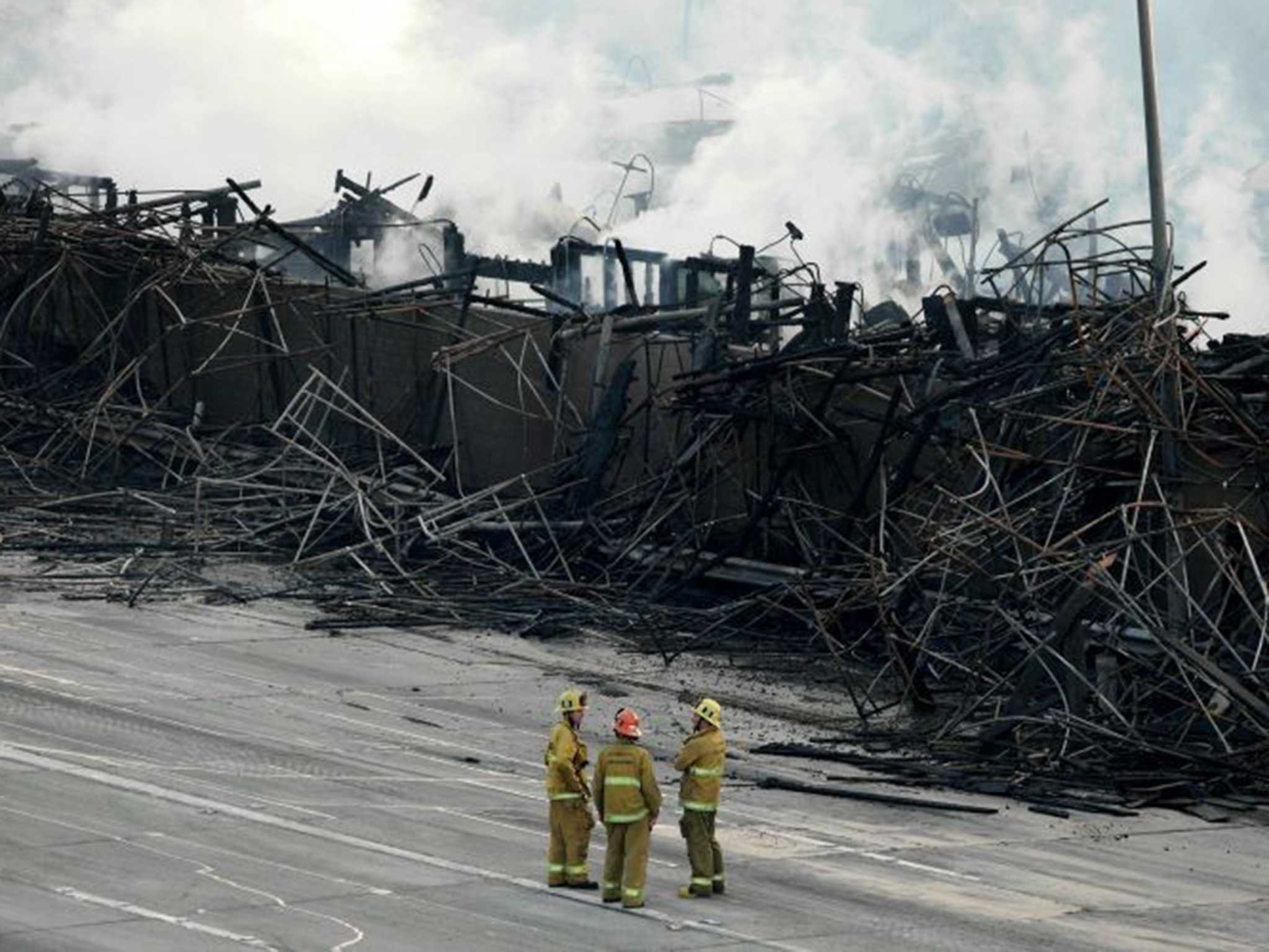 The strength of the flames can be seen in images recording the devastation surrounding West Temple Street, an east-west motorway which travels through the centre of the busy city.