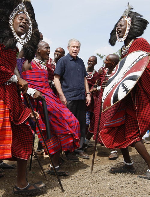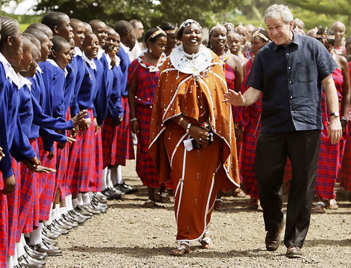Bush was in Tanzania to sign a compact for $698m in aid from the United States to help the African nation in its struggle against the spread of malaria. He had also brought Tanzanian President Jakaya Kikwete, a basketball player in his youth, the gift of a pair of Shaquille O'Neal's trainers.