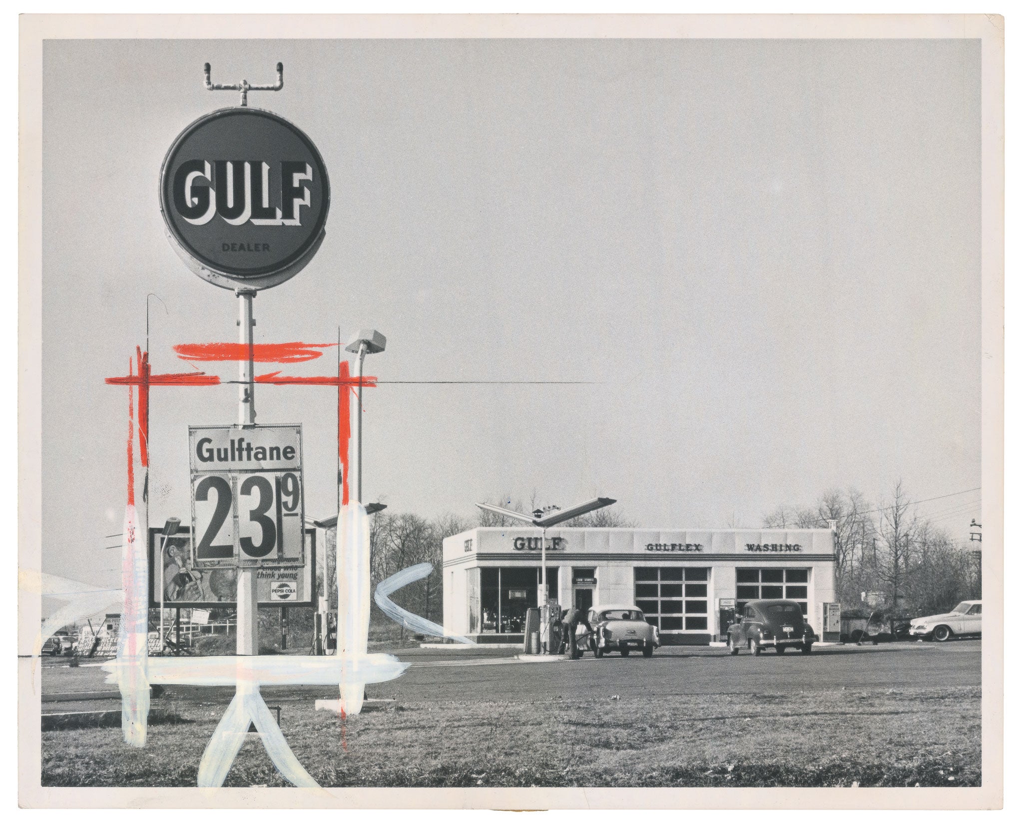These marks are part of this photo's appeal – and of the hundred or so more that Campany collected, and has now edited into a book of 35 images simply entitled, Gasoline. "They have an aesthetic of their own, those marks, although they are totally practical," he says, pointing out that many of the photographs – which span 50 years, 1945 to 1995 – have multiple markings from being used to illustrate multiple stories.