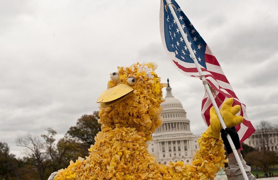 Mecham also hadn't anticipated that his rally would become the setting for a wedding. Charlie Anderson and Lisa, who declined to give her last name, met on Match.com five years ago and came from North Kingstown, R.I., to get married in Lincoln Park before the rally. The groom dressed as Big Bird in a yellow tuxedo. The bride, in a green gown, dressed as Kermit.