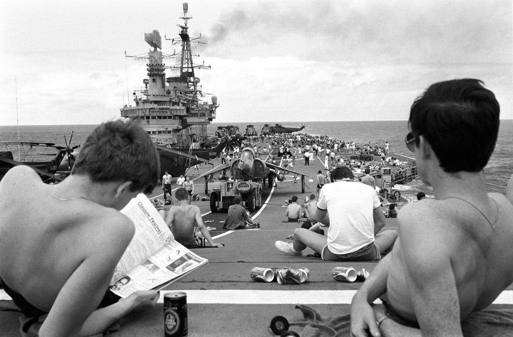 And in this assembly of photos, the happiest one is perhaps the most ominous. Not since the Second World War has there been patriotic joy to match the moment when the returning carrier HMS Hermes sailed into Portsmouth. The British garrison in the Falklands has been greatly expanded. But if the Argentines were to capture the islands tomorrow, no Task Force could ever take them back. The Harrier force has been sold to the US, and Britain will have no aircraft carrier in service until 2020.