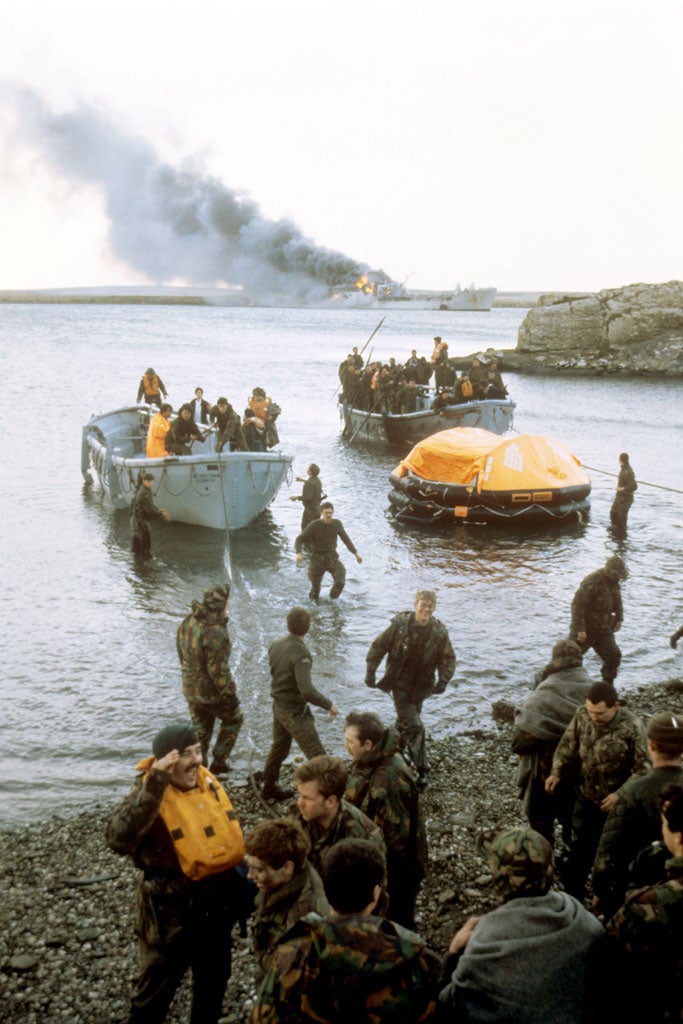 Like many wars, the Falklands also made celebrities out of weapons. The vertical-take-off Harrier jet gained the mystique of the Spitfire 40 years earlier, its prowess matched – alas – by the 'fire-and-forget' Exocet missiles used by the Argentine airforce, one of which sank the destroyer HMS Sheffield.