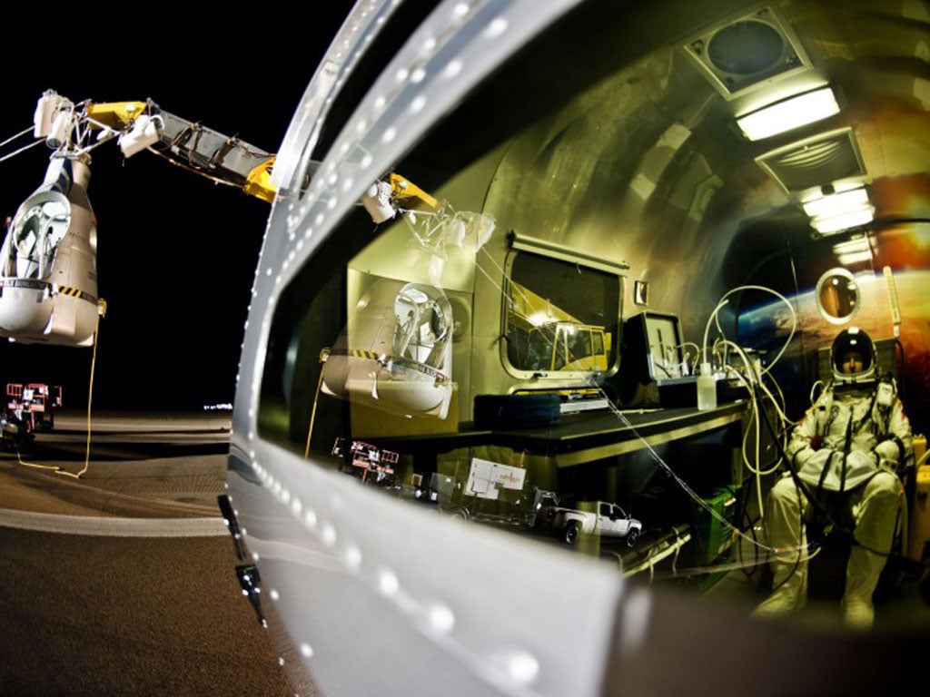 Baumgartner's team included Joe Kittinger, who first attempted to break the sound barrier from 19.5 miles up in 1960, reaching a speed of 614 mph, just under the sound barrier. With Kittinger inside mission control today, the two men could be heard going over technical details during the ascension.