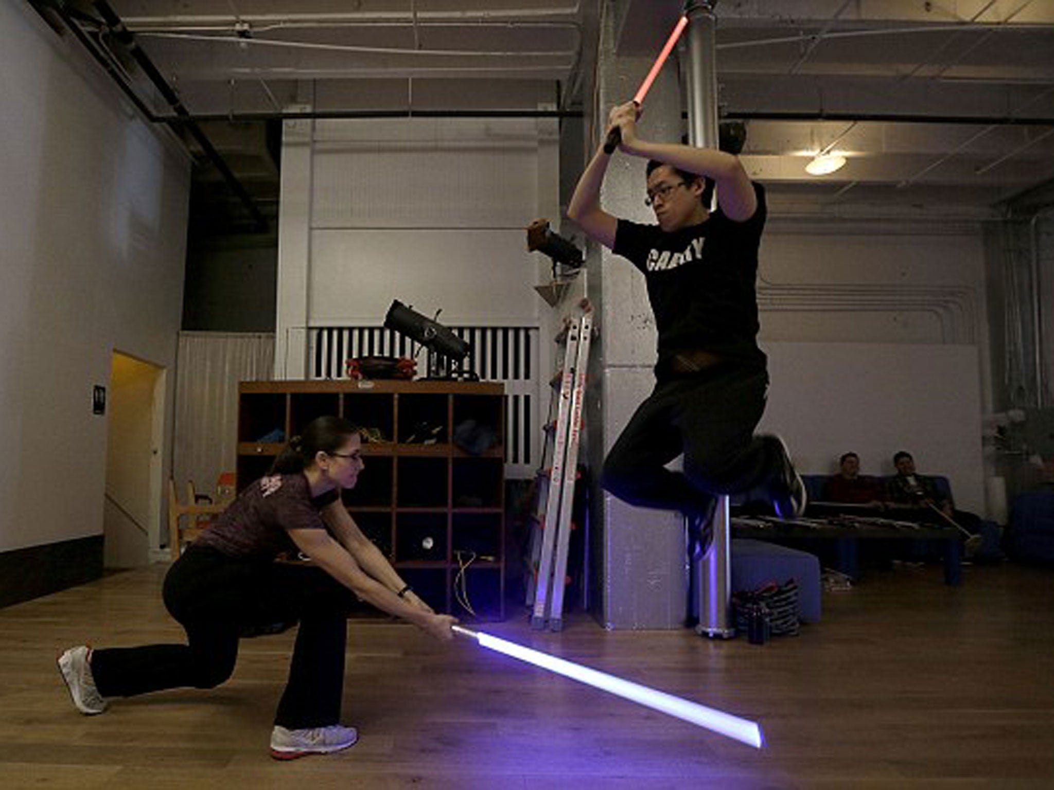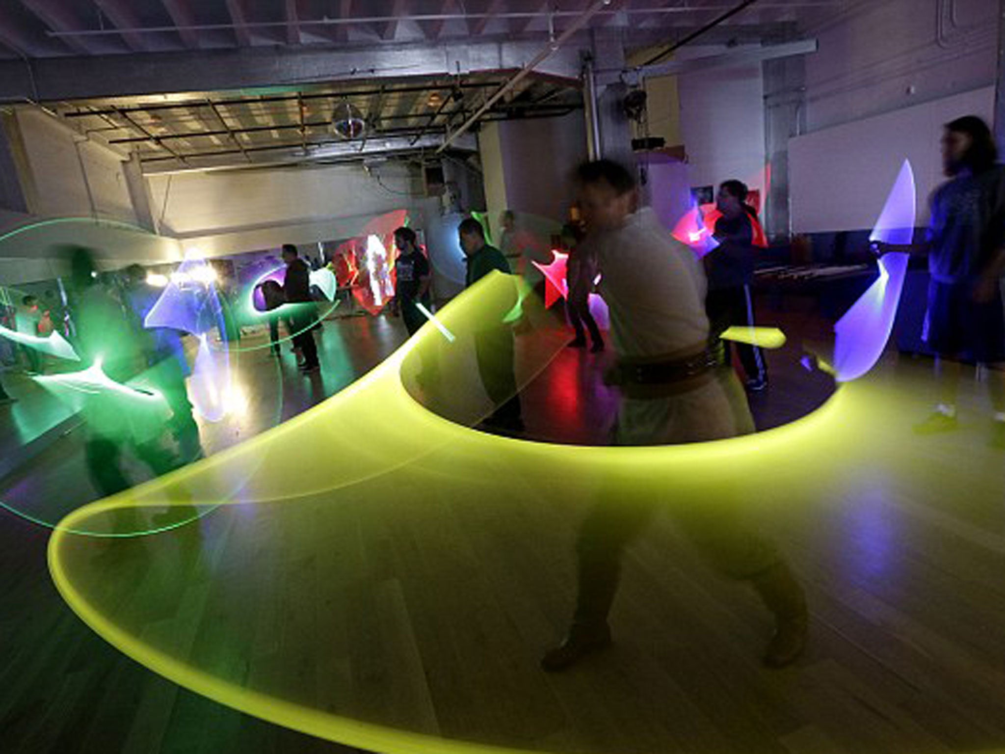 Gallery: Accompanied by Star Wars music attendees slice and parry around the dance studio clutching neon-glowing lightsabers.