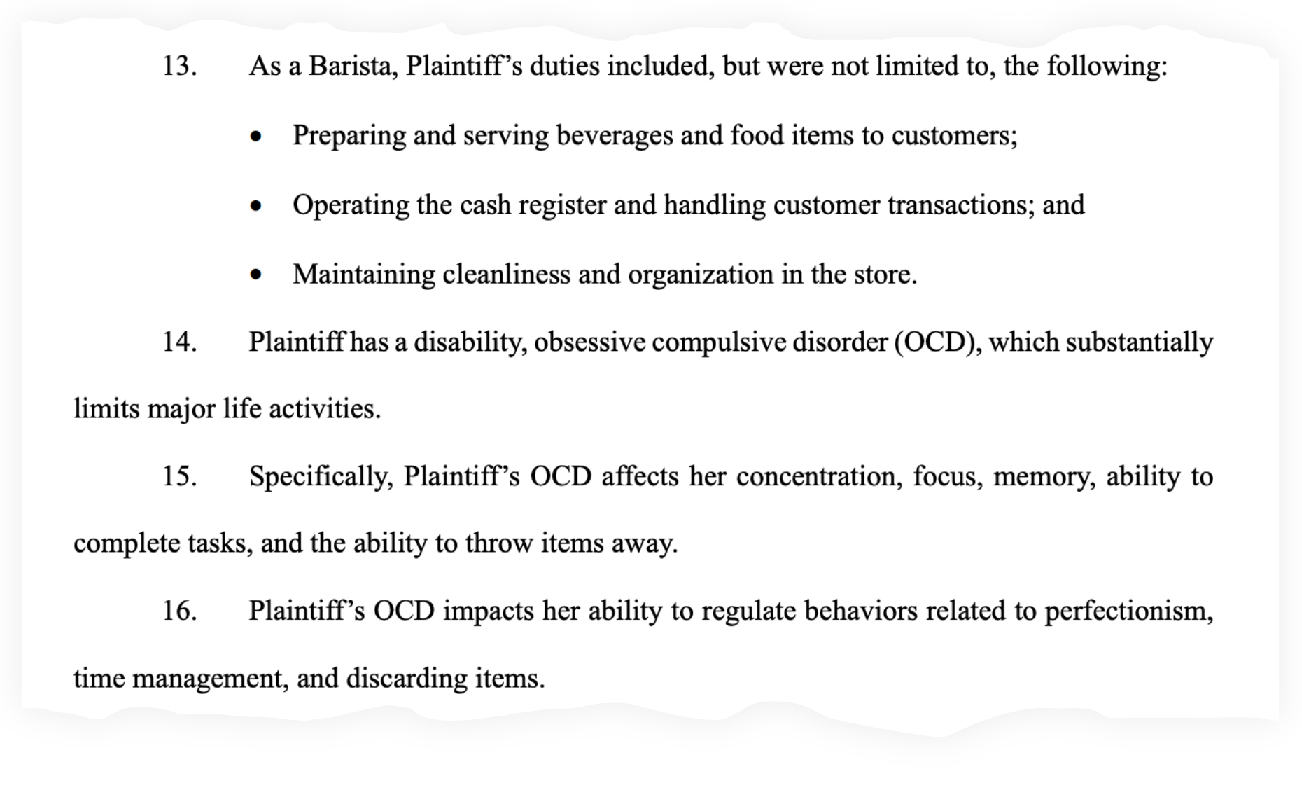 Starbucks employee with OCD that makes it hard for her to throw away trash sues for wrongful termination