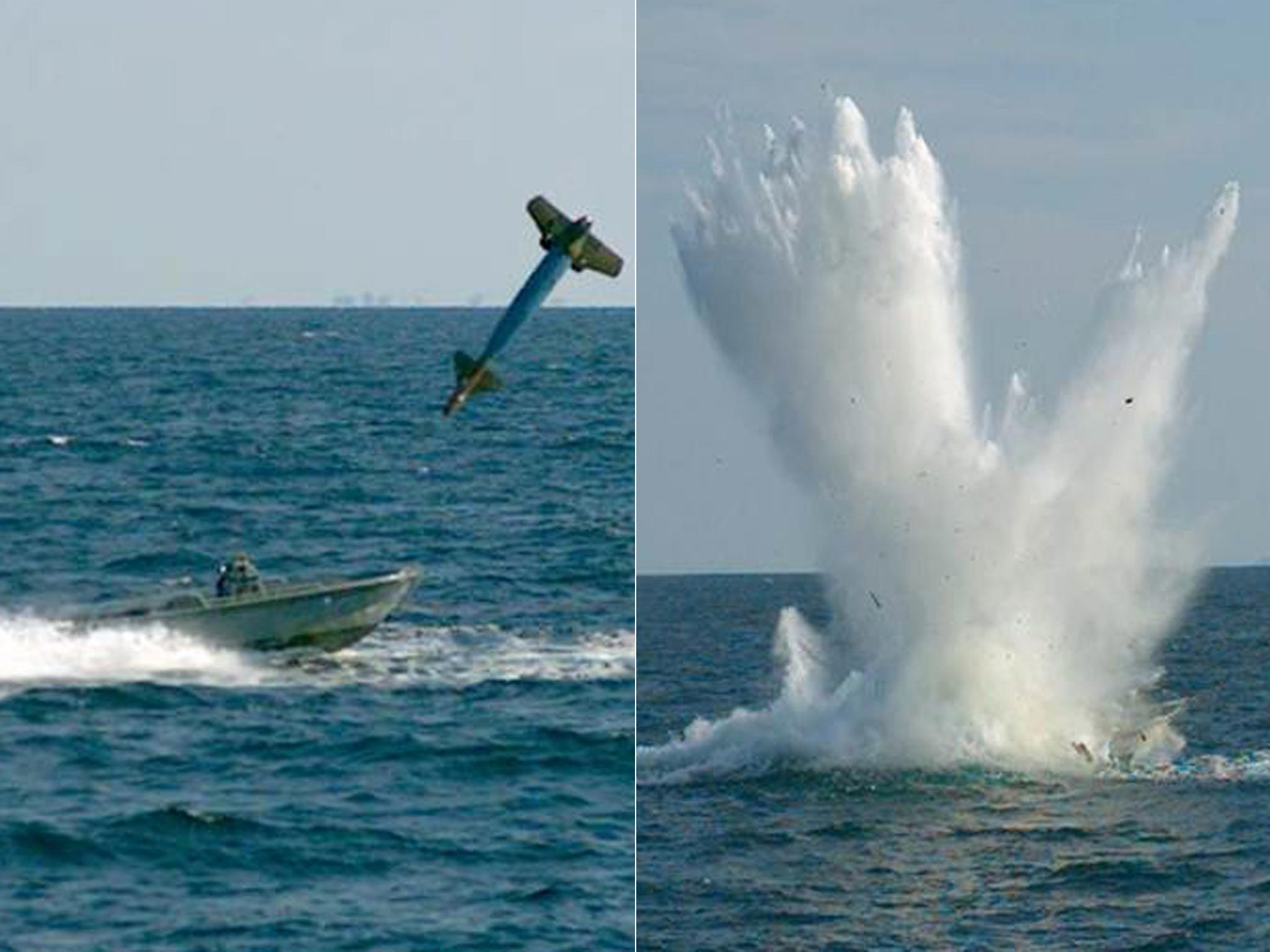 This is the moment a laser-guided bomb struck a moving speedboat in the Gulf of Mexico.