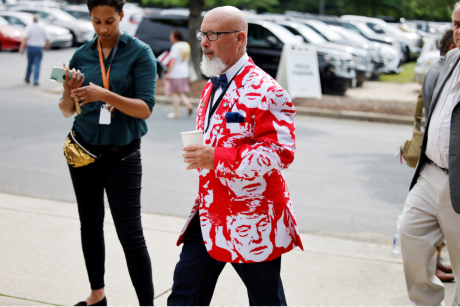 Bobby Hanig, a representative in North Carolina’s legislature, arrived at the state GOP convention wearing a jacket covered with images of Donald Trump.